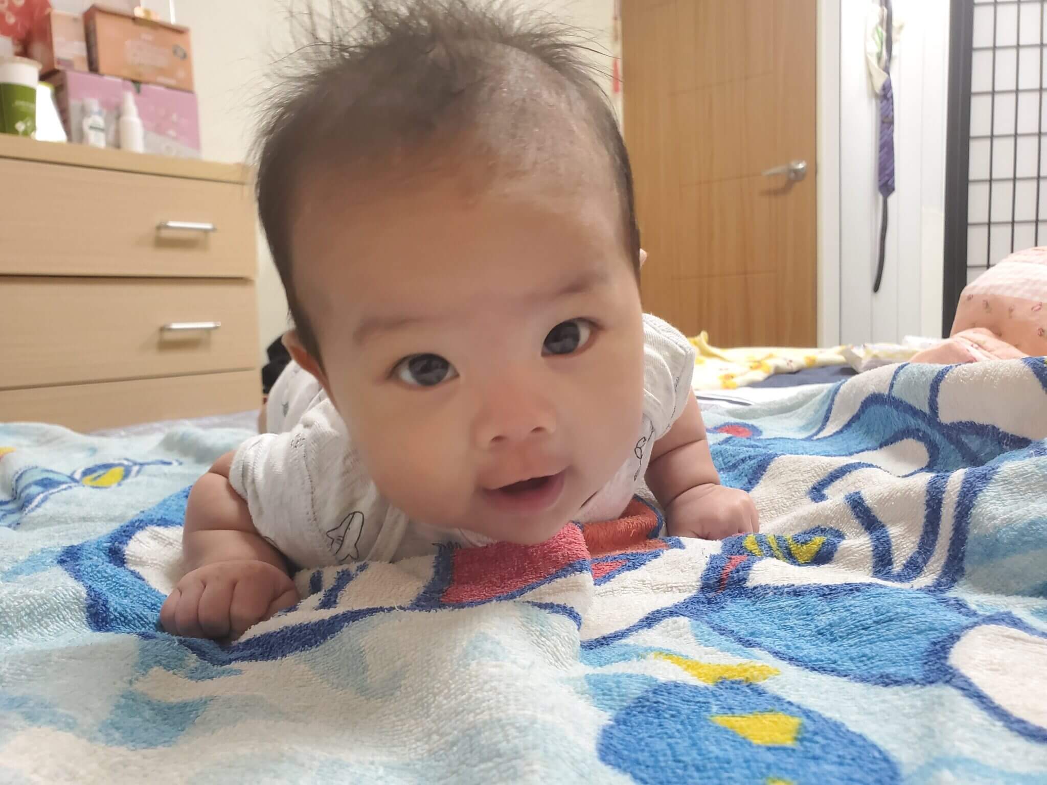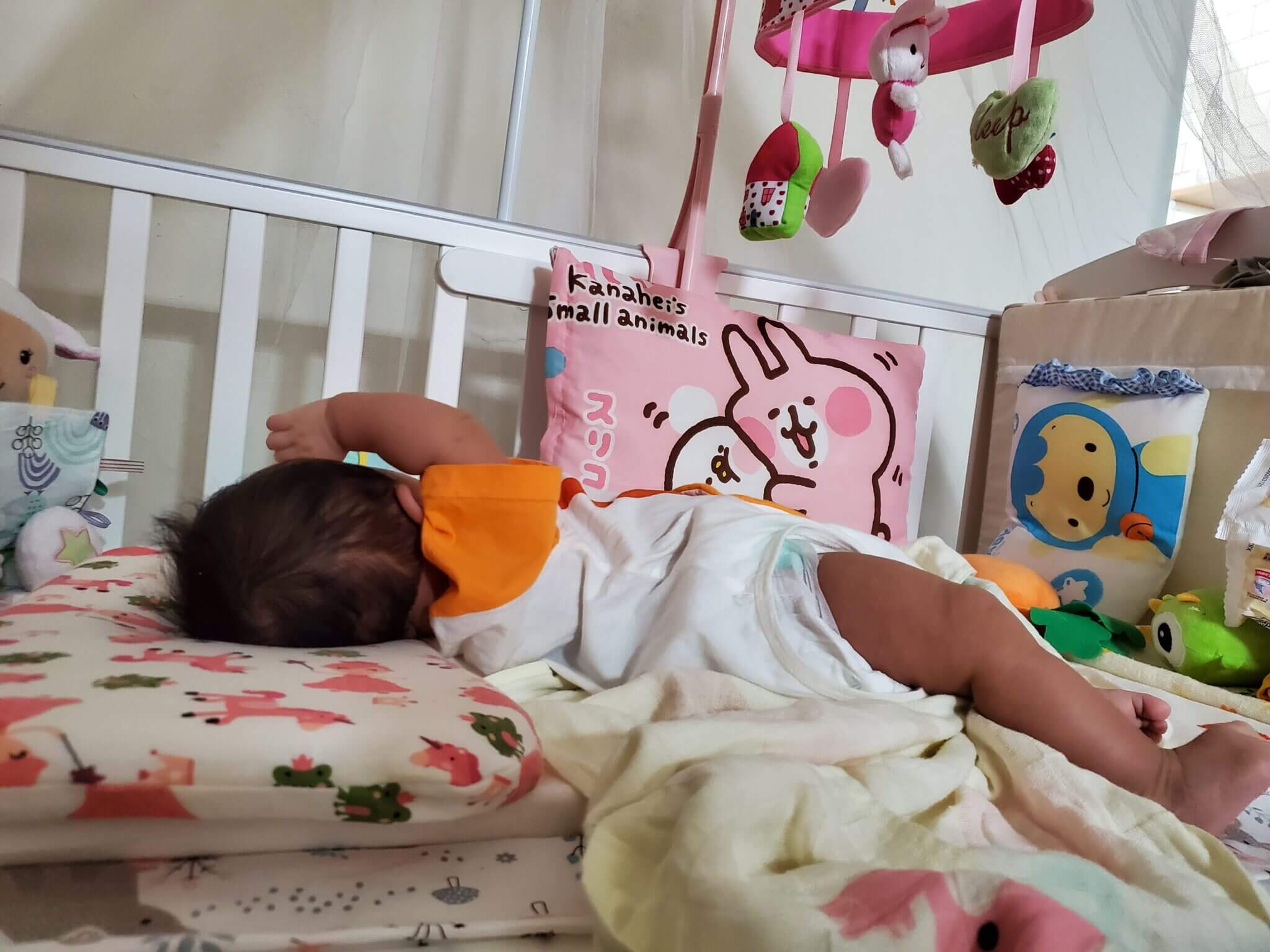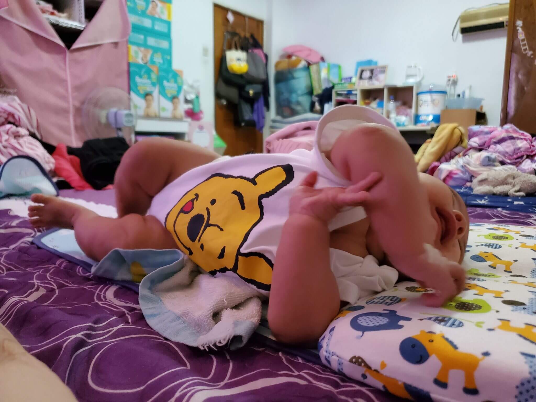 雖然學會翻身是一件很棒的事情,但是半夜常常要把自己翻過去又沒辦法繼續睡而在哭的小孩安撫,真的是很痛苦啊,還好大約1個禮拜以後,這個情況就好轉了,真是可喜可賀哈哈哈