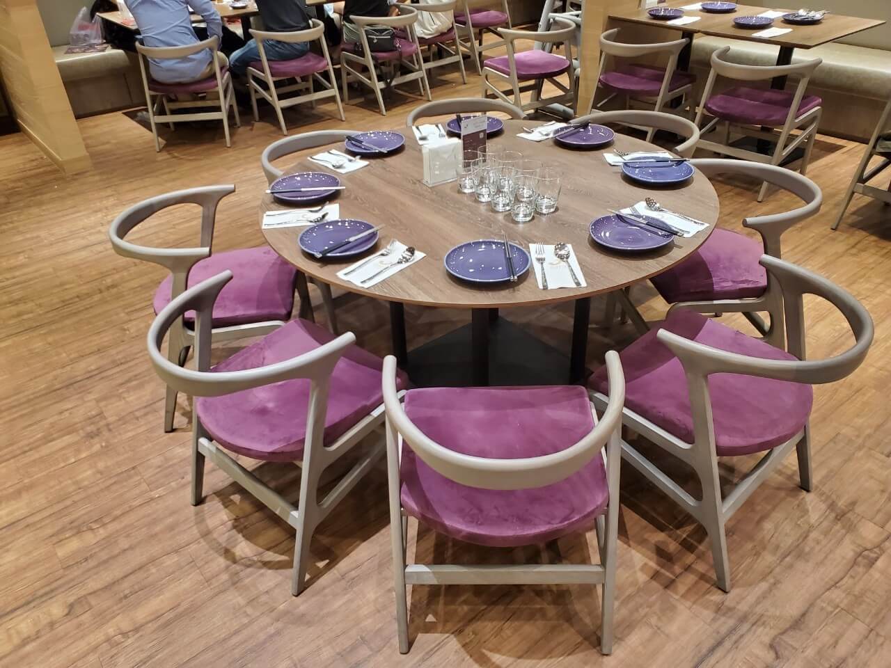 Nara的裝潢讓人覺得很舒適,紫色配上柚木色,淡淡柔柔的,再加上座位與座位之間距離蠻大的,擺脫了紫色的厚重感,反而感覺很放鬆呢