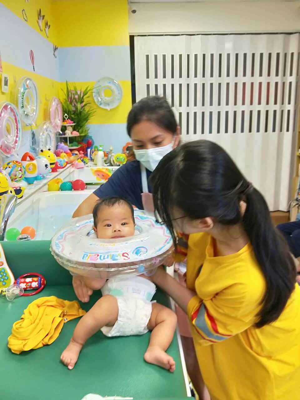 我一開始以為寶寶游泳其實就只是像讓他們泡在水裡飄來飄去,但是其實不是耶,他們的小手手小腳腳會一直動,比起在床上靈活許多