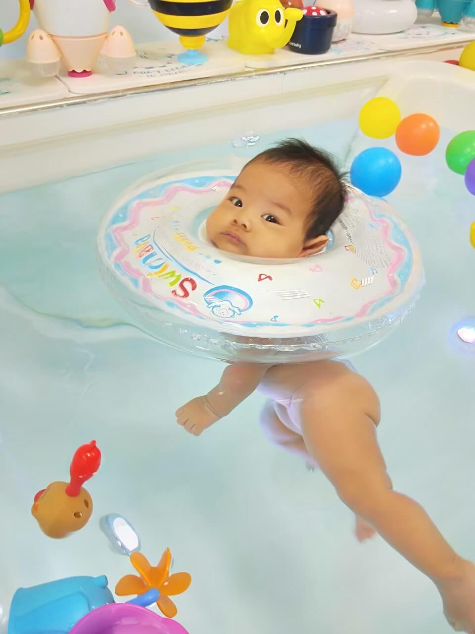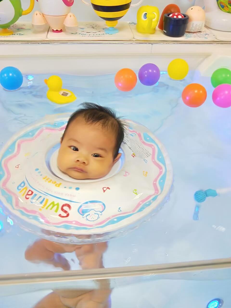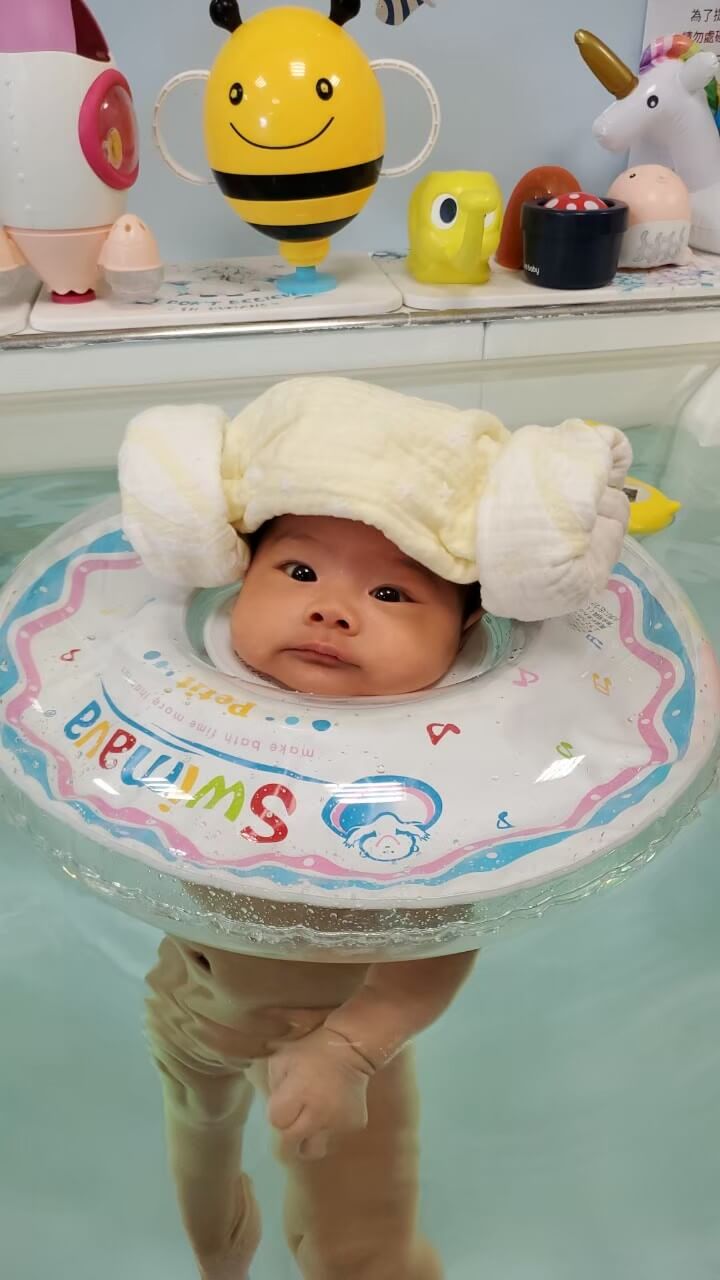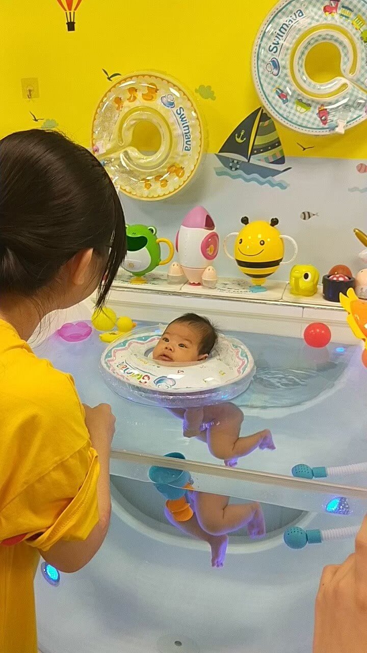 就這樣過了第一個月的月子,又和媛媛多磨合了一個月之後,想著現在的媛媛應該可以套游泳圈了吧,就立馬趕快找到家裡附近的一間寶寶游泳,預約最快的時間哈哈哈