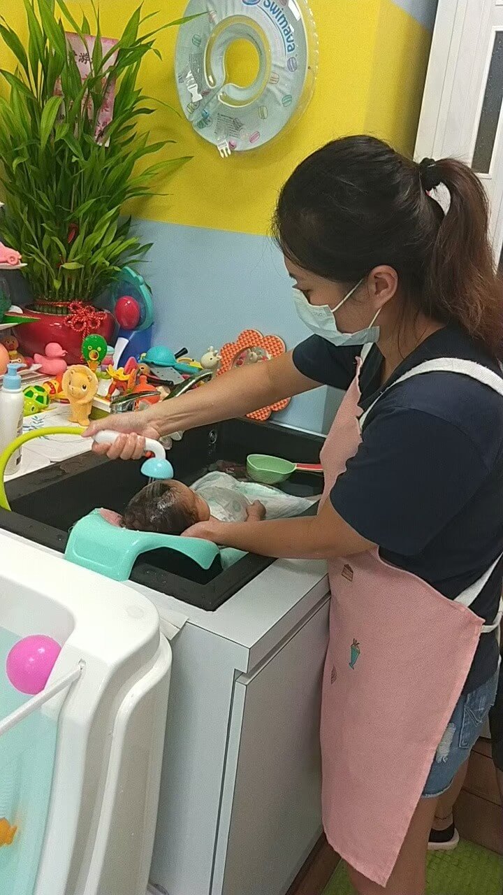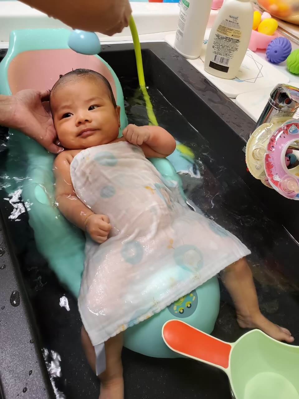 平常在幫媛媛洗澡的時候,不管心情好或不好,甚至因為肚子餓在哭,只要把她放進水裡,就可以立馬停住哭聲,兩隻小腳丫也很興奮的一直踢,感覺就是一個愛玩水的寶寶