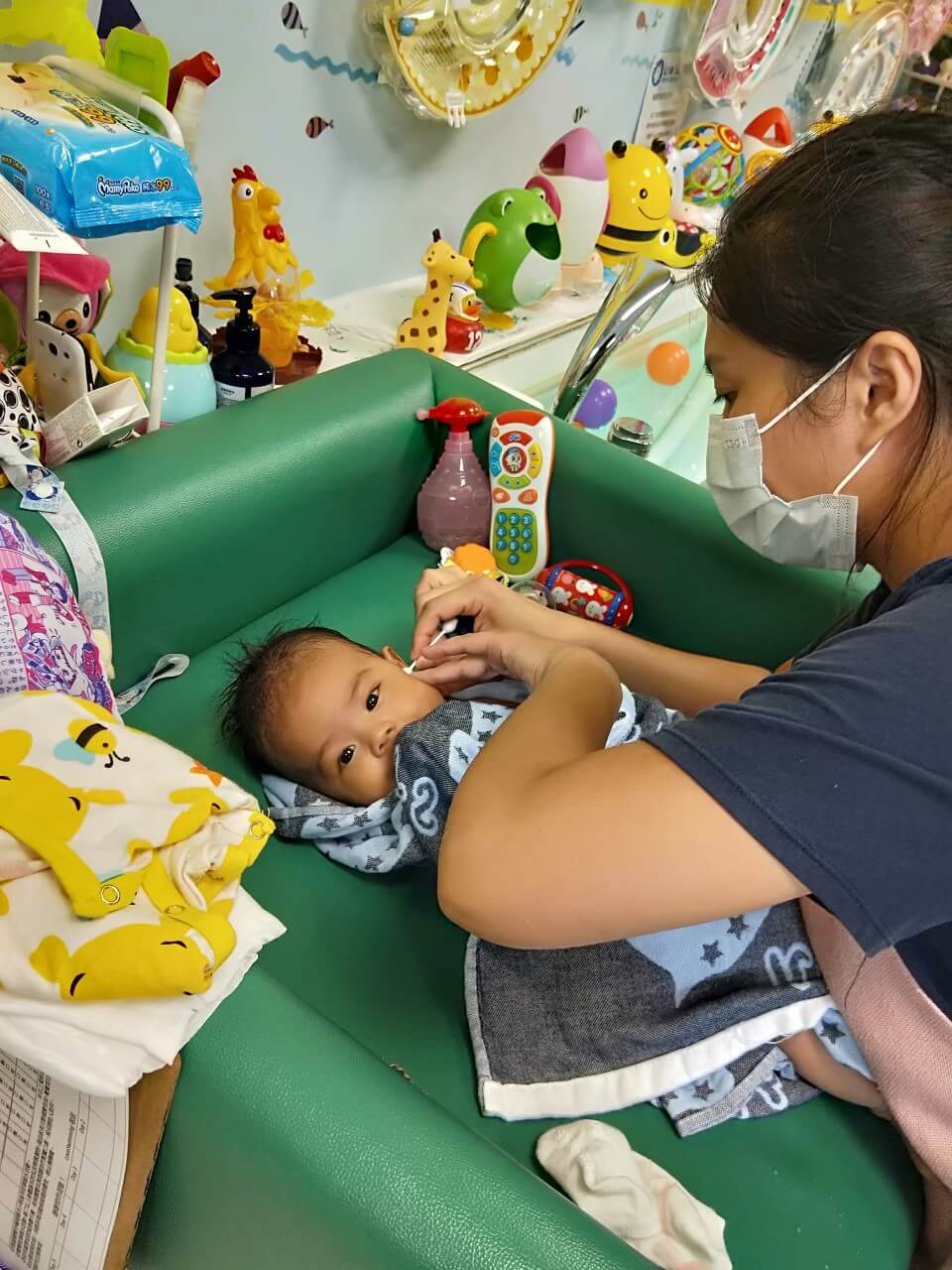 只是不知道是不是真的累了又餓了,還是習慣洗完澡必須馬上喝內內,這時候的媛媛開始有點躁動,到最後甚至有點哭鬧,小吃貨餓起來是不能等的,衣服穿好趕快跟老闆借個哺乳室奉上內內給媛媛
