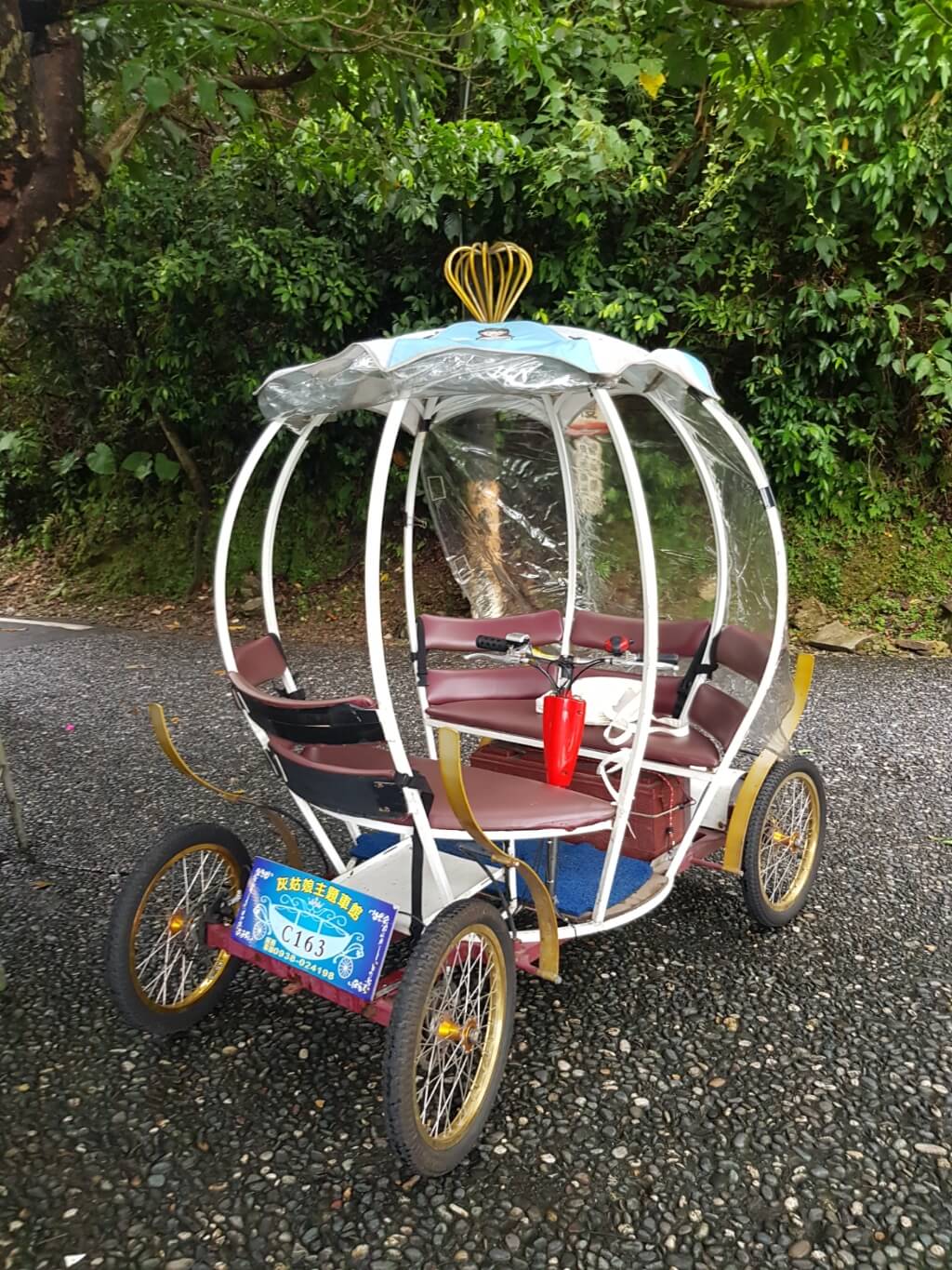 這就是今天我們租的電動車,類似南瓜形狀的「灰姑娘主題車館」