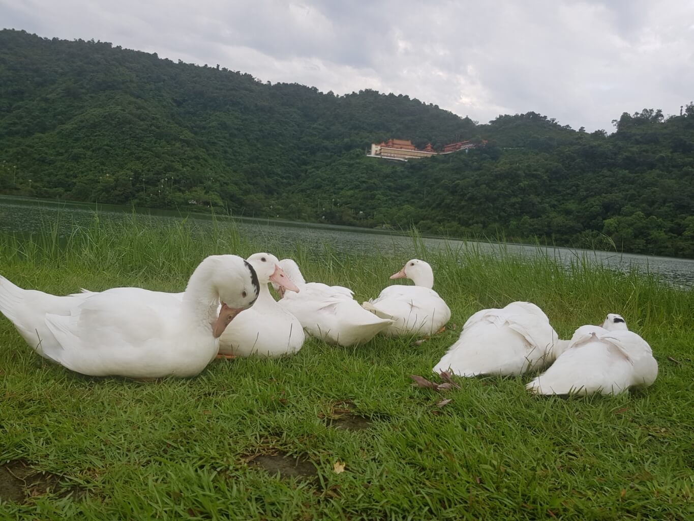 開著電動車繞著梅花湖走,不像在台北生活步調快,這邊時間彷彿像靜止了一樣