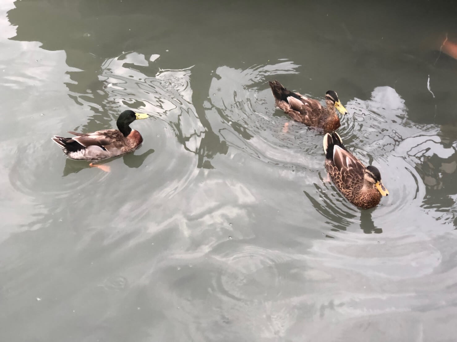 一路上還看到許多成群的小鴨子,在觀景台還設有魚飼料販賣機,往水裡一望,每隻魚都肥滋滋的,看來一直以來都有不少遊客在投食