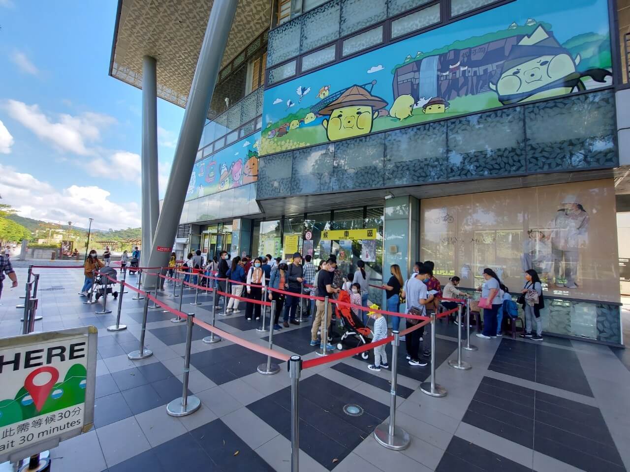 不知道是不是天氣太好,木柵動物園的對面有一片超大超大的停車場,但是今天全部都停滿了,我們還排隊等了一陣子才進去,如果要來還是建議早點來就不用擔心沒位子停