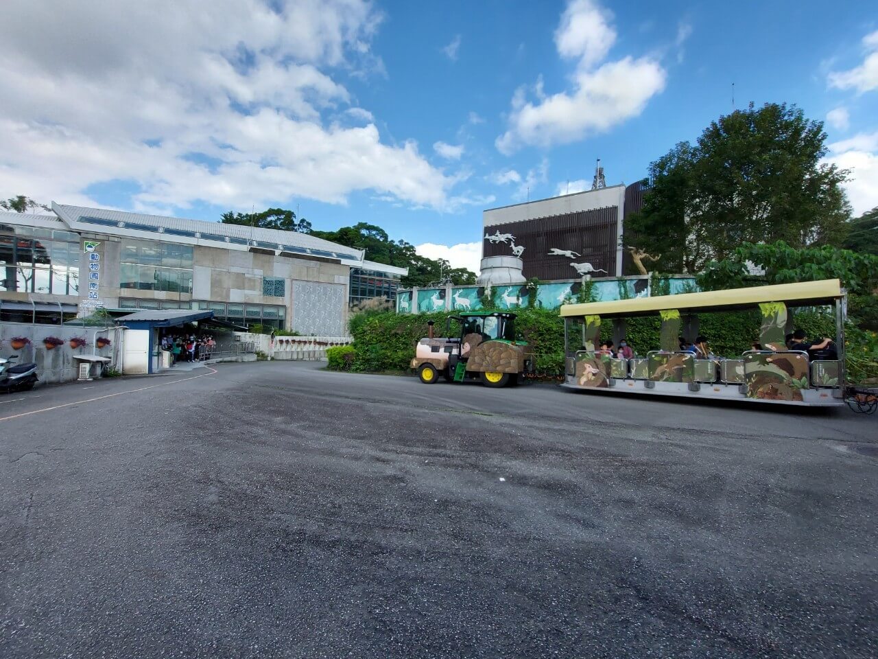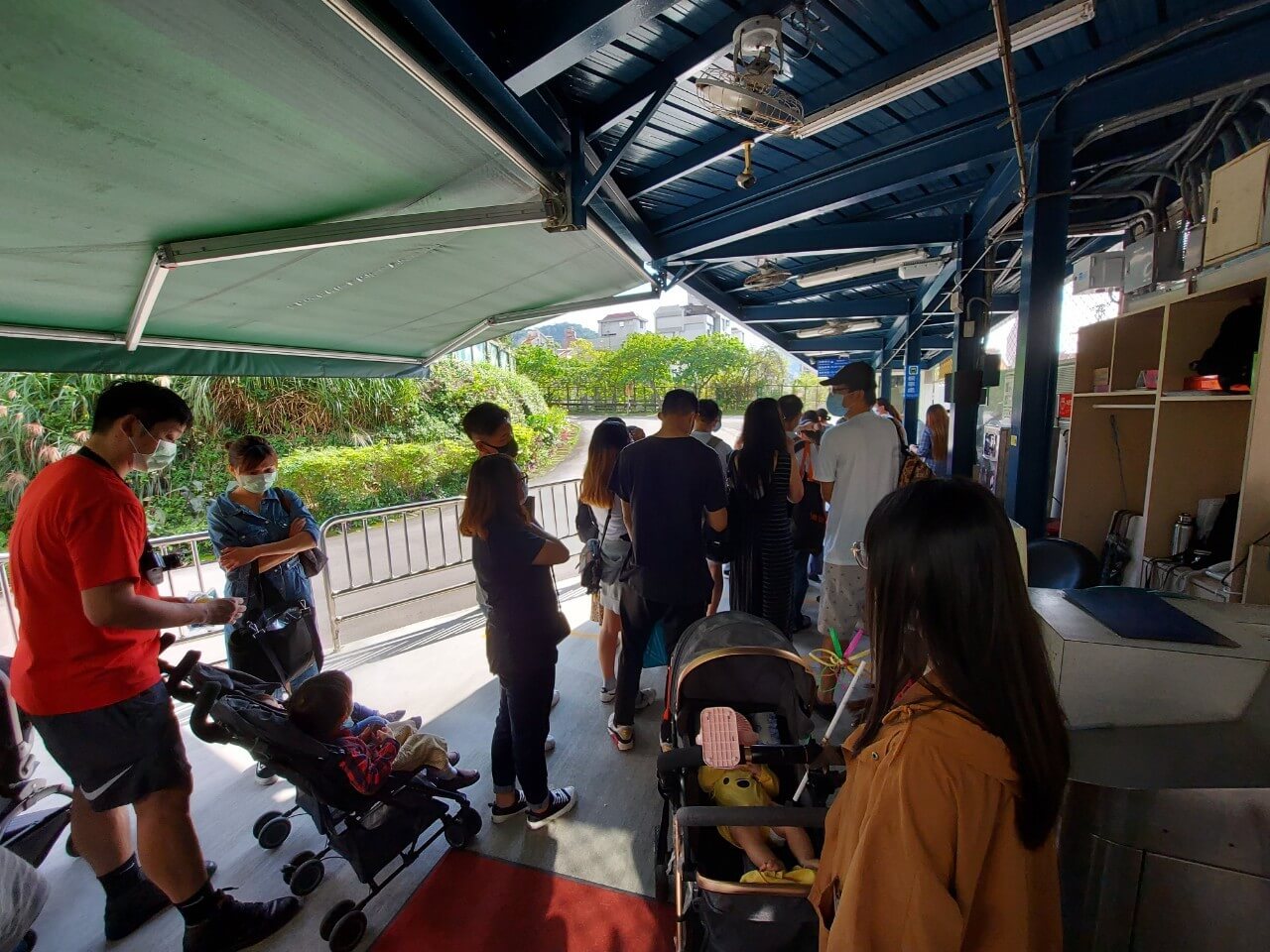 從南站下車就只能搭小火車進動物園,車站出去以後,左轉就能看到搭小火車的地方,不過現在因為疫情的關係,必須要實名制入園,沒有身份證的必須掃QR扣登記,還要買車票,結果動線設計的不是很好,造成一堆人卡在入口