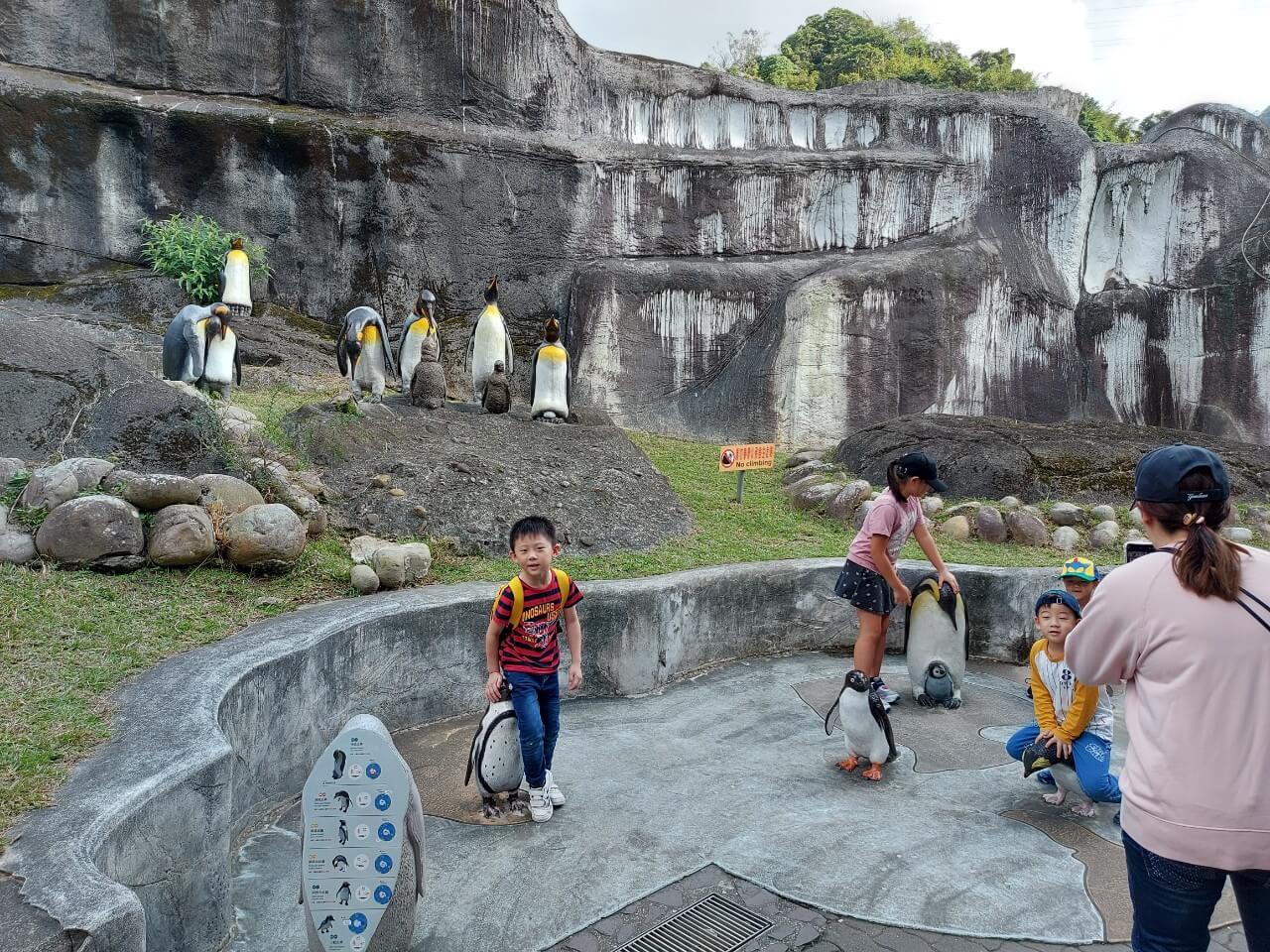 從爬蟲館出來以後,我們就繼續往企鵝館的方向走,快到企鵝館的時候,有放置一些企鵝一比一的雕像,不少小朋友看到就瘋狂,連續拍了好幾張照片