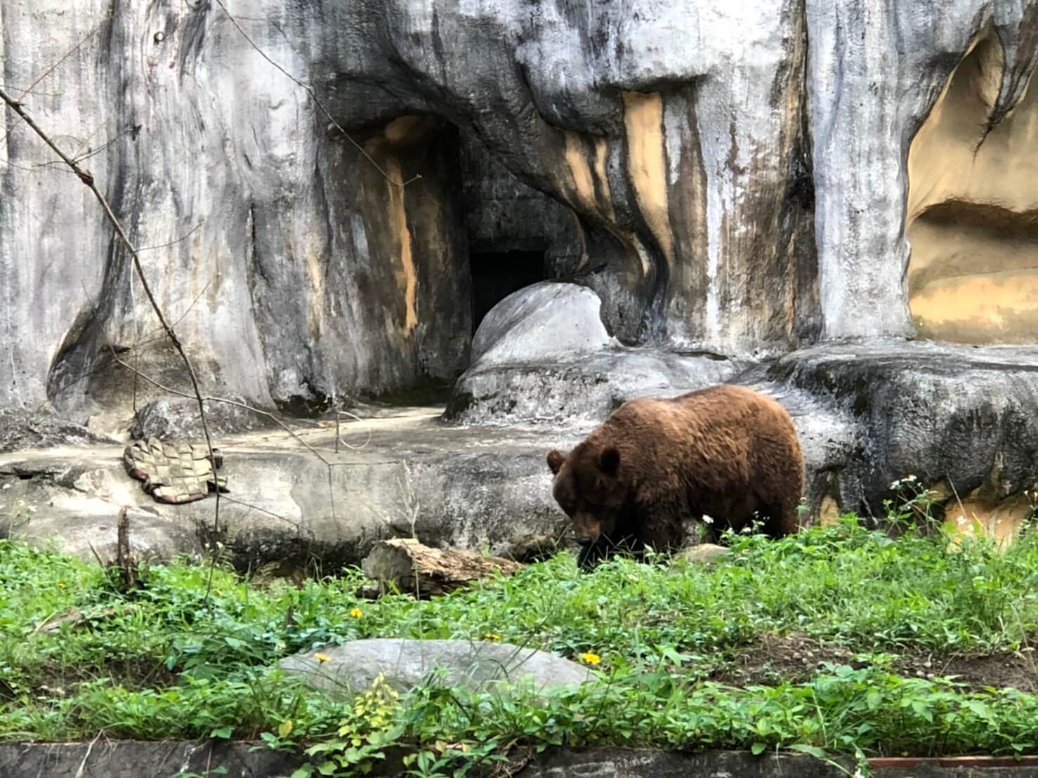 往回走,會經過棕熊的區域,要看到棕熊真的很碰運氣,我來了好幾次幾乎看到牠都在睡覺不然就是很遙遠,今天不知道是不是剛好遇到他活動時間,竟然跑到前面來,讓旁邊圍觀的人都好興奮