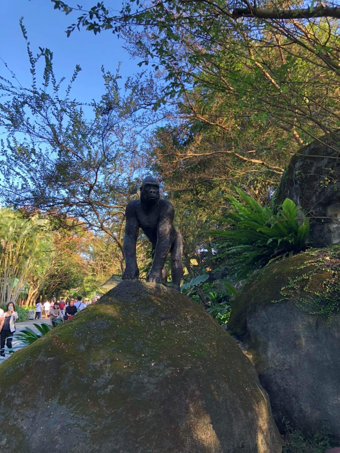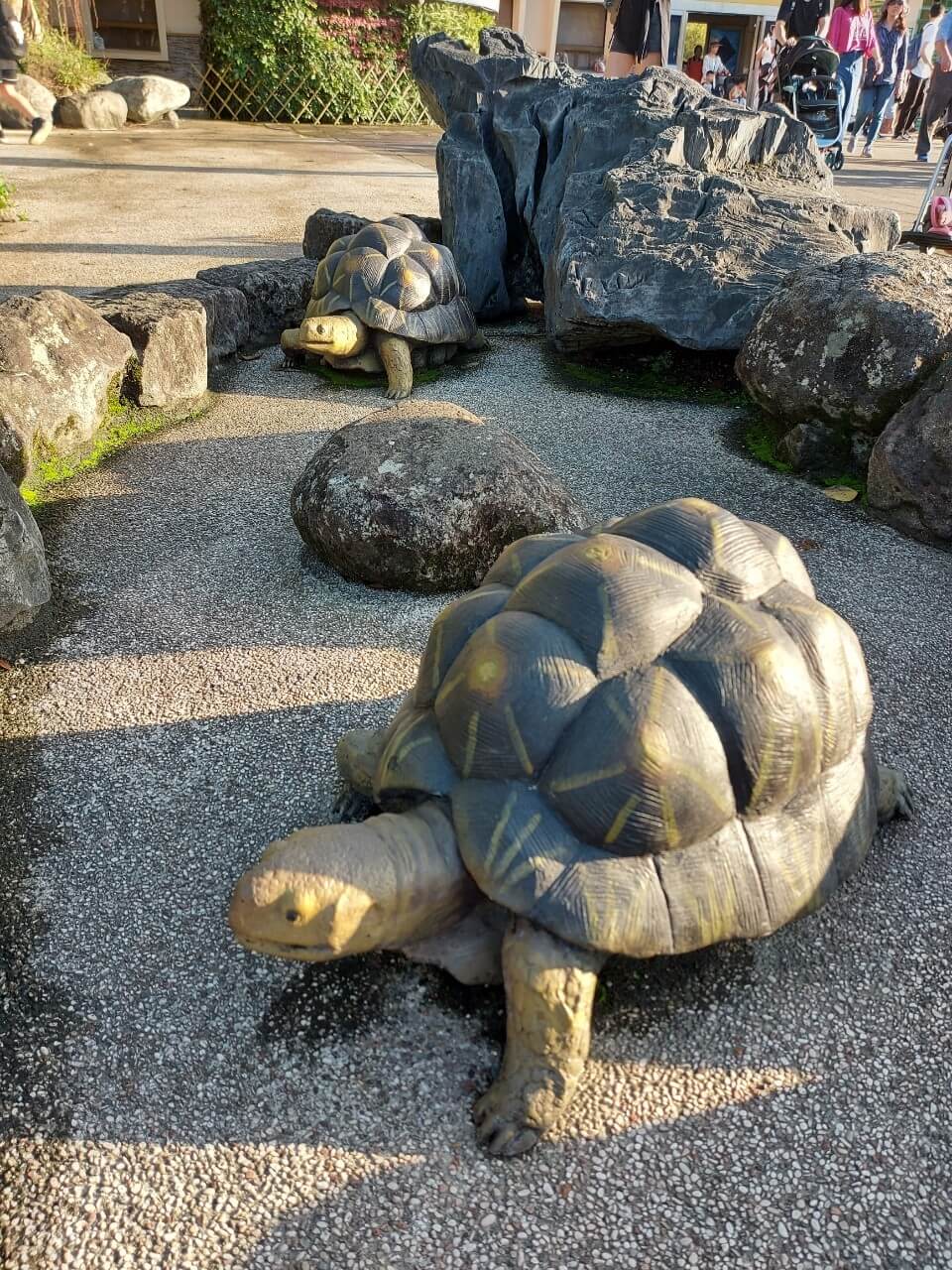 在動物園裡面的有各式各樣的動物雕像,有長頸鹿、猩猩、老鷹等等,還有最常看到的烏龜,這天看到不少爸爸媽媽帶著小朋友一起玩找找看遊戲,看誰找到動物雕像,真的是很有趣呢 !