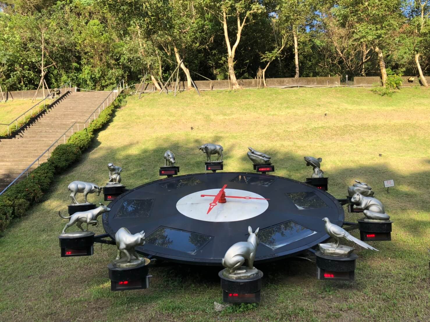 在一旁的草地上,還有動物時鐘,是利用太陽能發電的,我原本以為會是12生肖,結果不是哈哈哈