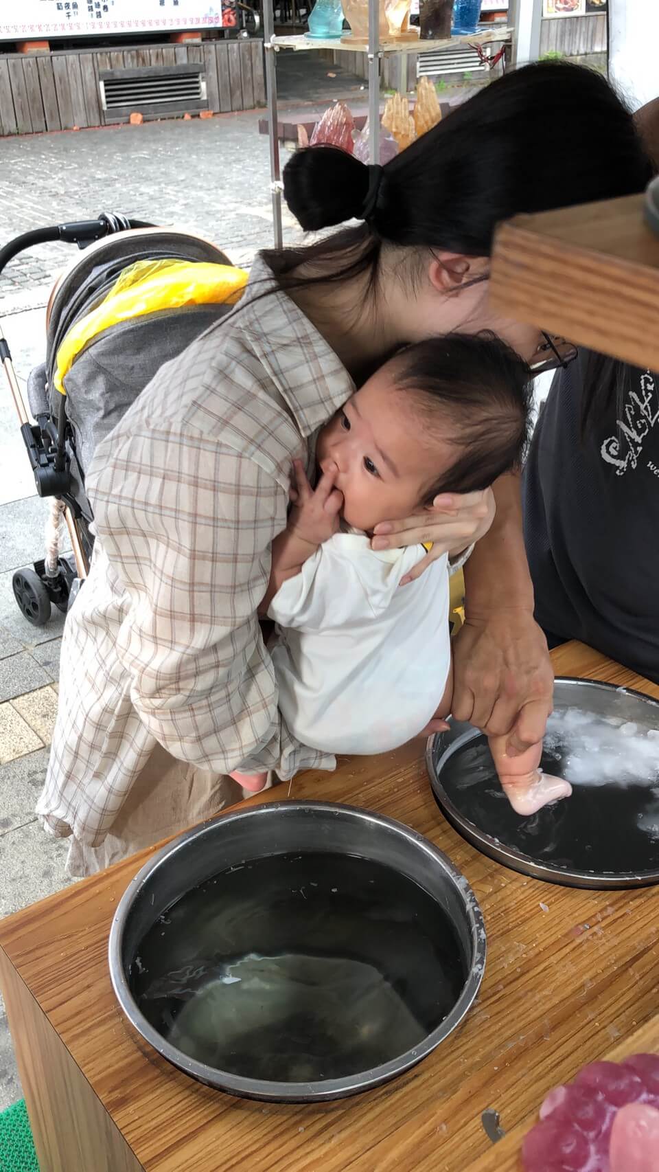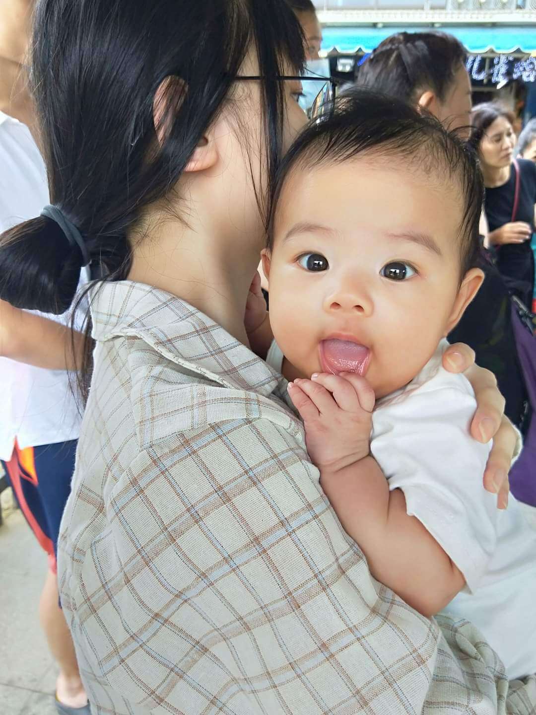 一開始在排隊的時候,原本想說媛媛會不會不受控,想說要先把她哄睡,結果她太興奮了,我抱著她搖來搖去她也東看看西看看,就是不睡覺,真是一個愛出門的孩子啊~
