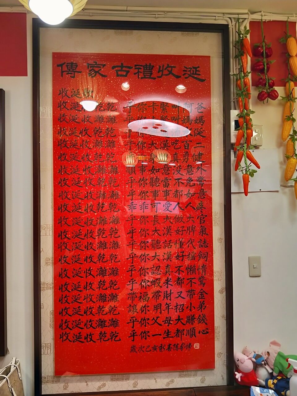 接下來來到重頭戲了,收涎和講吉祥話,一大串的吉祥話都要用台語講,這可是難倒我這個破台語的,還好工作人員會帶著我們唸一遍