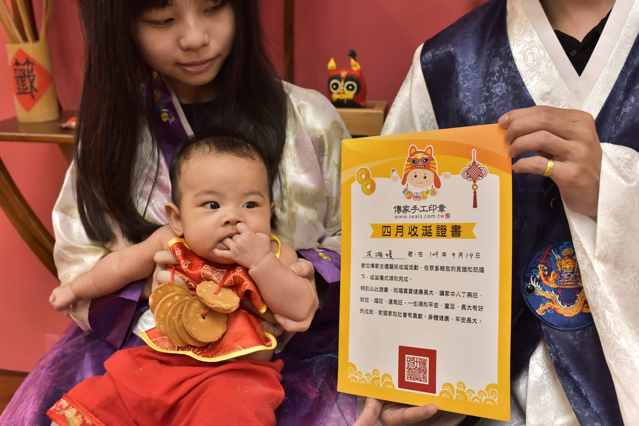 小嬰兒從3.4個月大就開始會一直流口水,根據習俗在4個月大這天的時候,要替寶寶「收涎」,也就是收口水,是有祈福保佑寶寶快快長大的意思
