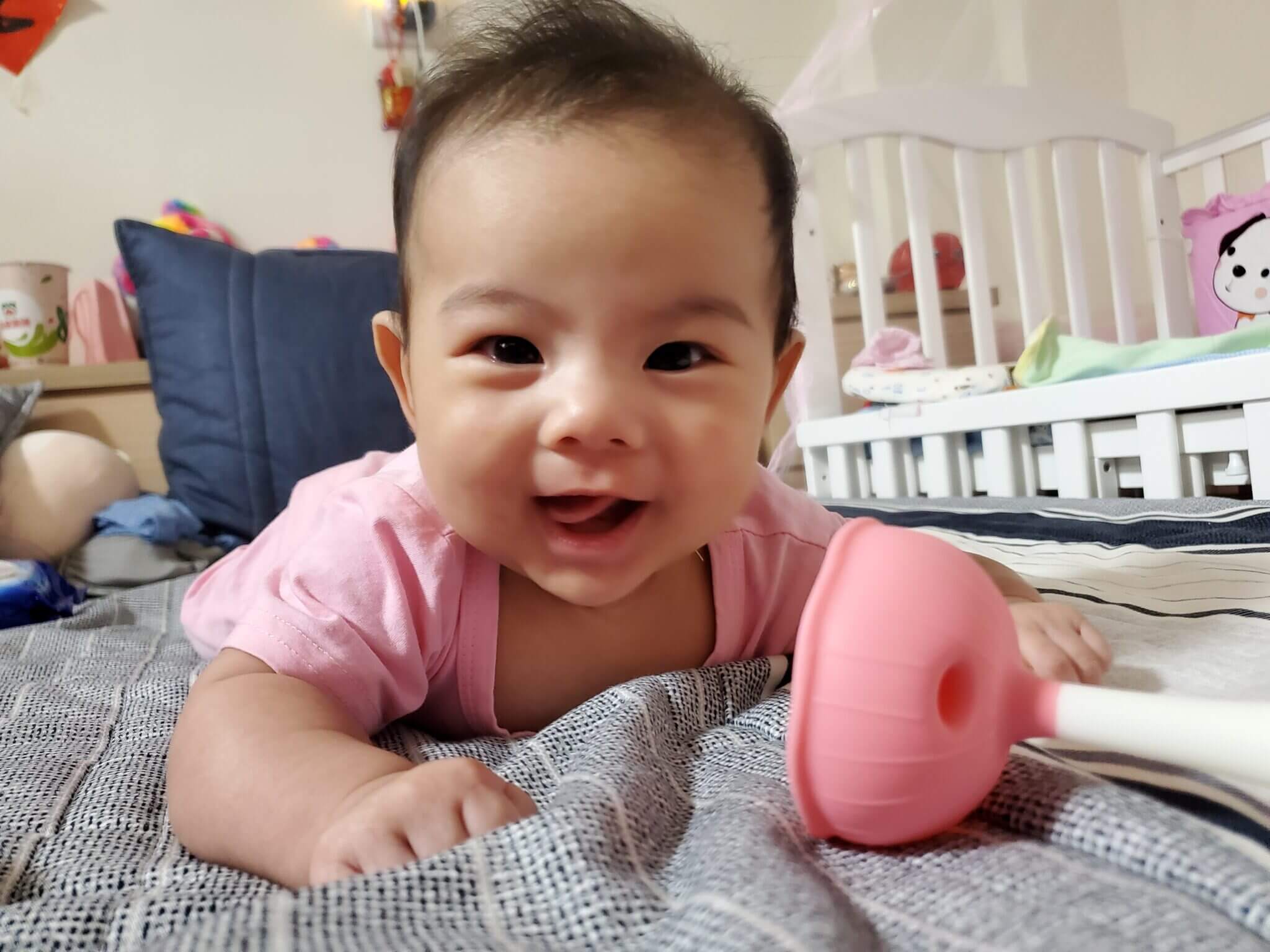 難不成是餅乾太香太香,媛媛控制不住自己嗎,妳也才4個月大,小吃貨的個性就跑出來了哈哈