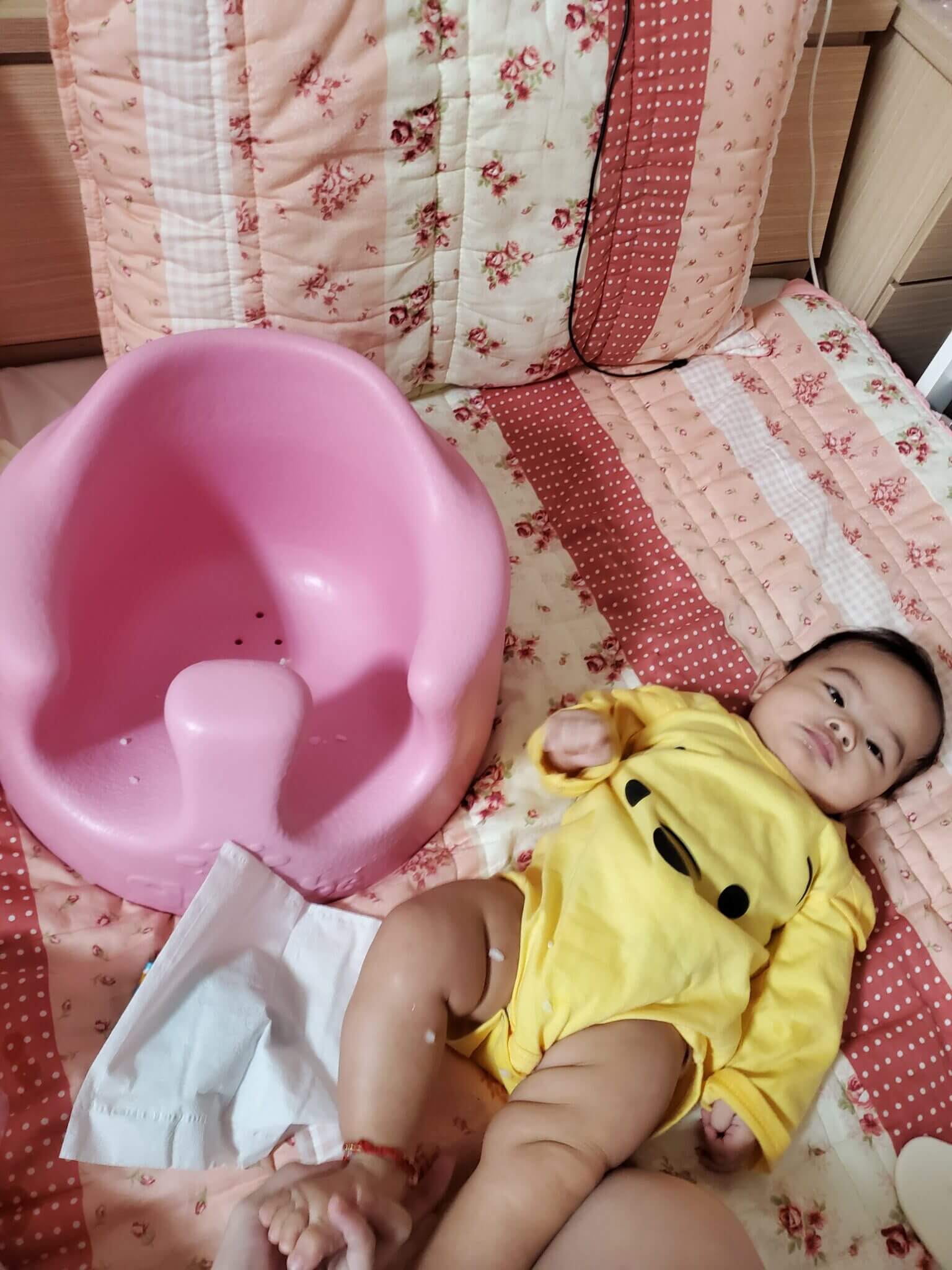第一次煮稀飯給媛媛吃的時候,是自己一個人在家讓媛媛坐在椅子上餵食,媛媛還不是坐的很穩,又喜歡這邊東摸摸那邊西摸摸的,搞得我手忙腳亂,吃到最後還整身和椅子上全都是,簡直太崩潰