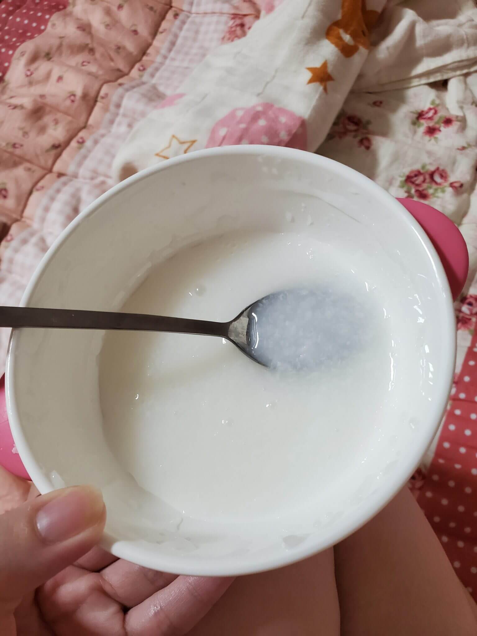 拿到米精之後,興致勃勃的趕快用成米糊讓媛媛嘗試她人生中第一口,一開始看到還很興奮,想說這個反應還不錯,結果沒想到媛媛吃下去以後竟然皺了眉頭哈哈哈