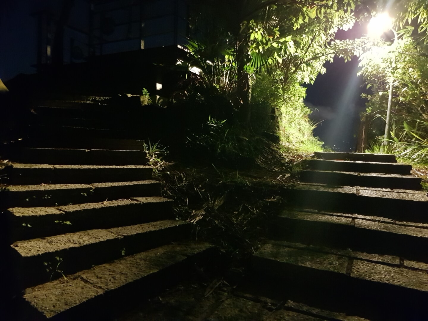 虎山的步道並不長,大概走了5-10分鐘就可以看到一個涼亭以及叉路口,如果要看夜景,要往左邊,才會通到觀景平台