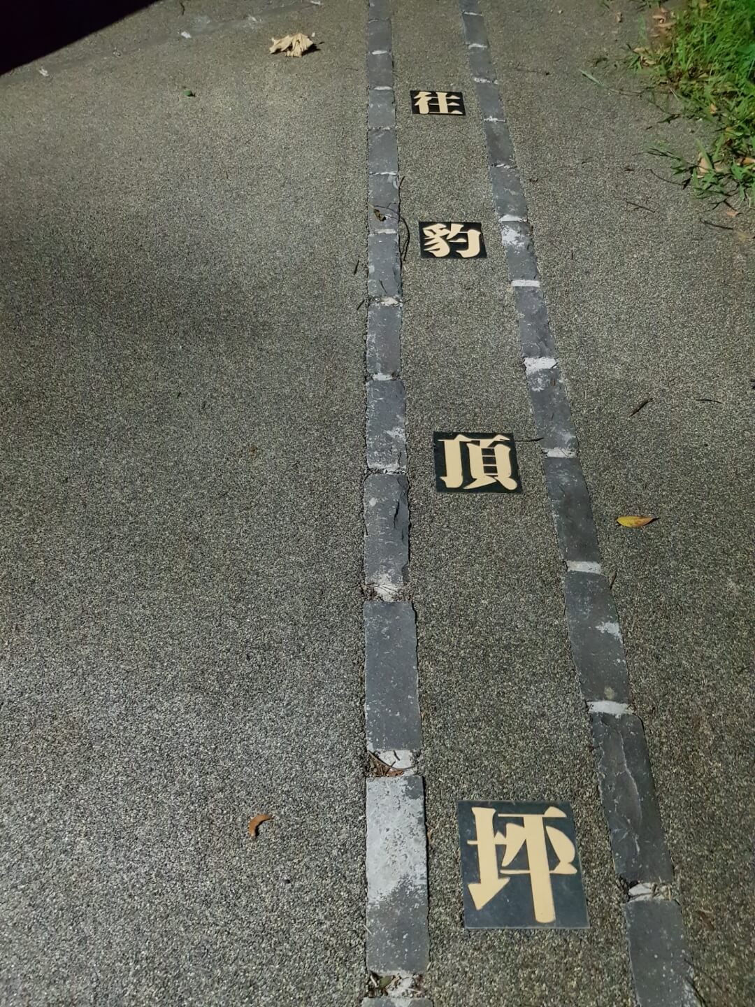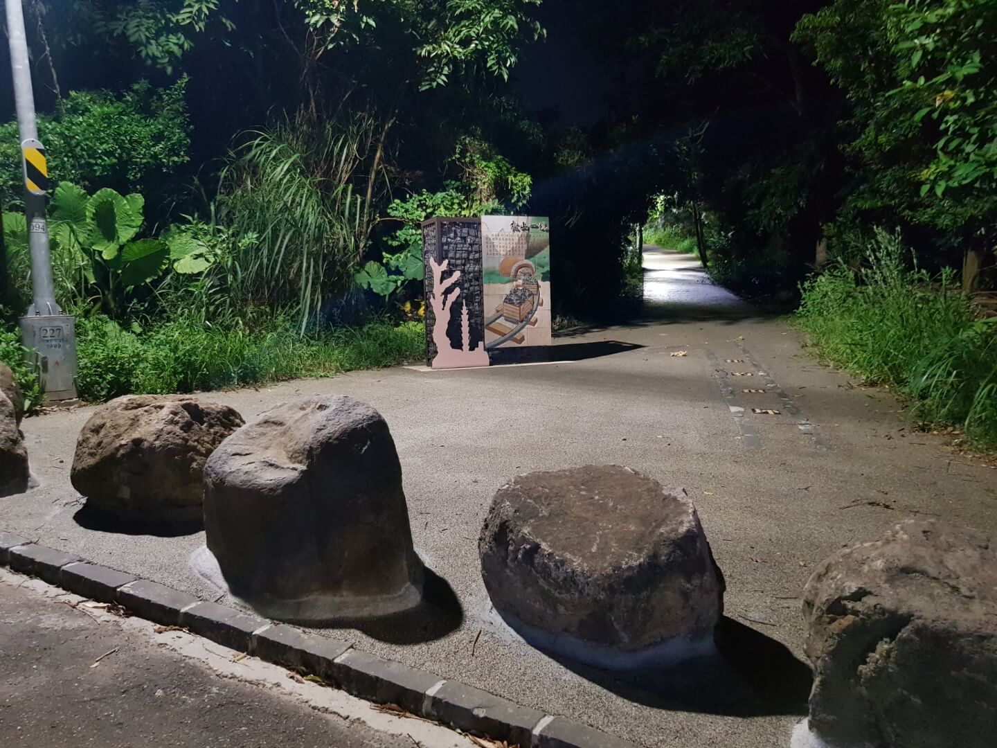 剛剛是瑤池宮往下走,這個坡道在瑤池宮的上面,往前走不到1分鐘就會看到一個告示牌及幾顆大石頭