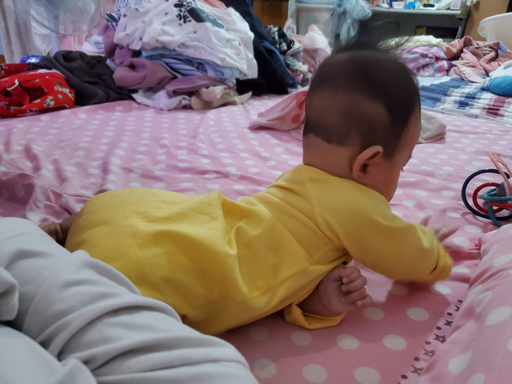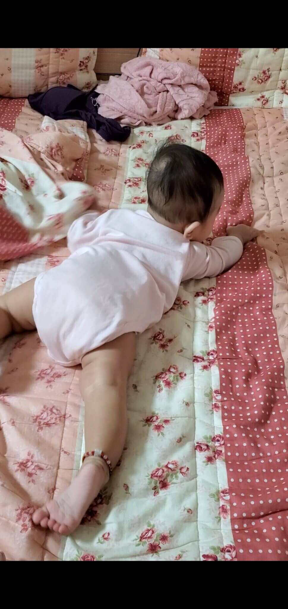 雖然很擔心媛媛這樣蹭會不舒服,但是制止了她,或是把她翻過來躺好,她就又自己翻回去開始繼續蹭,我也只能隨她而去,不過我卻一直在想,難不成 媛媛想爬了嗎