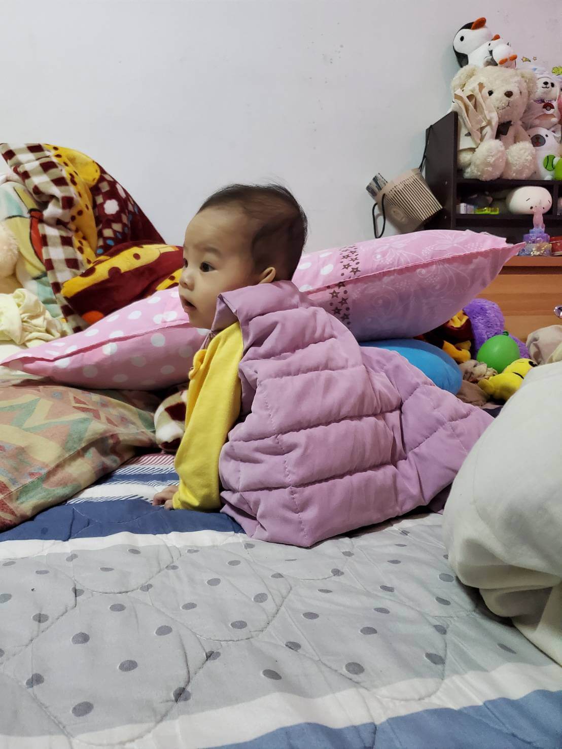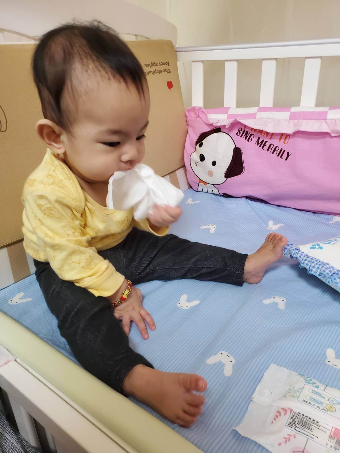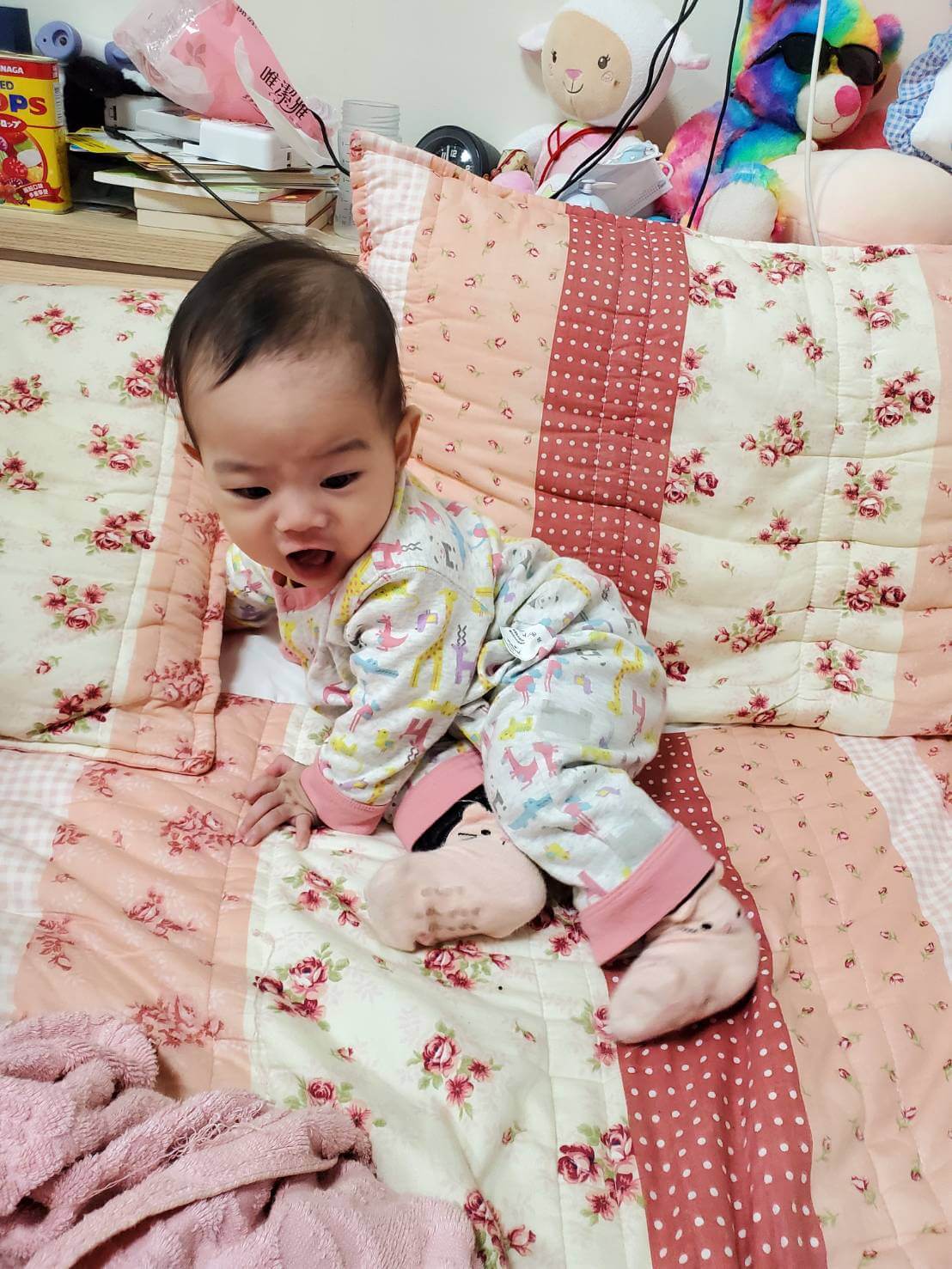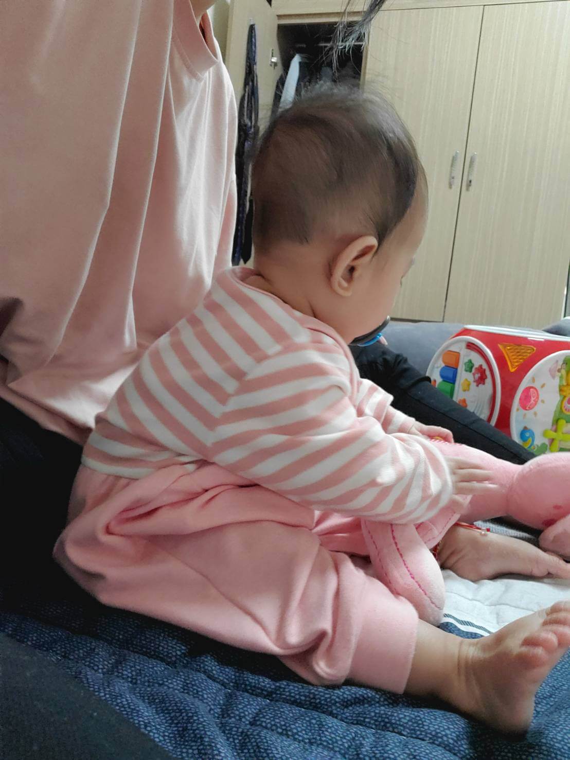 看到當下的我第一個想法是:媽 !媛媛自己坐起來了 !