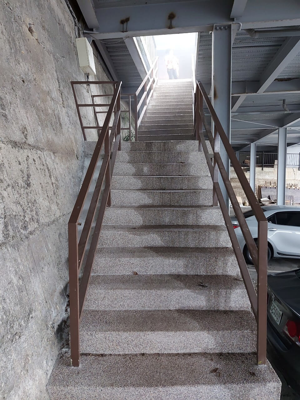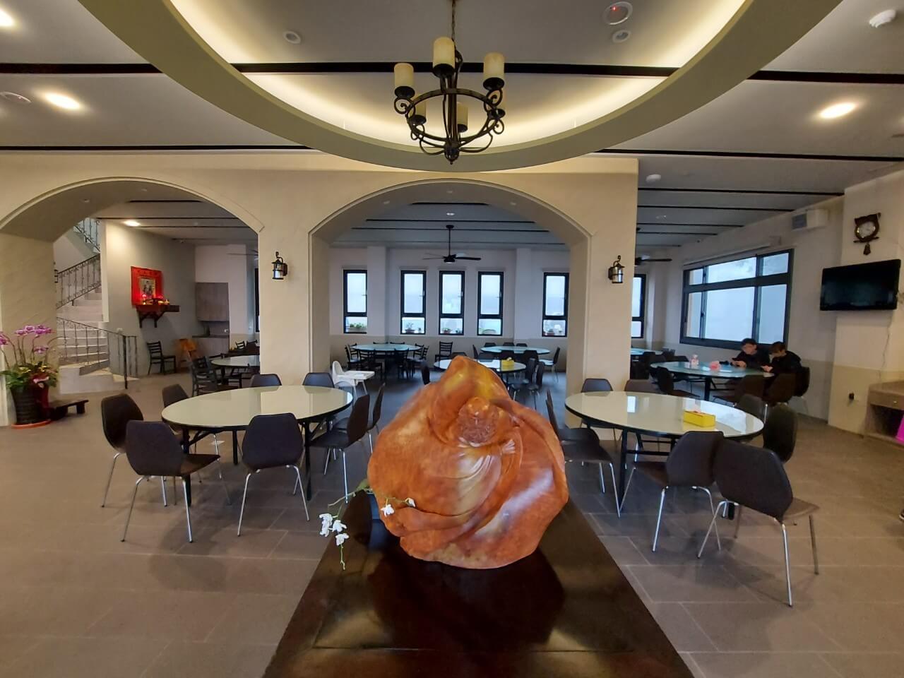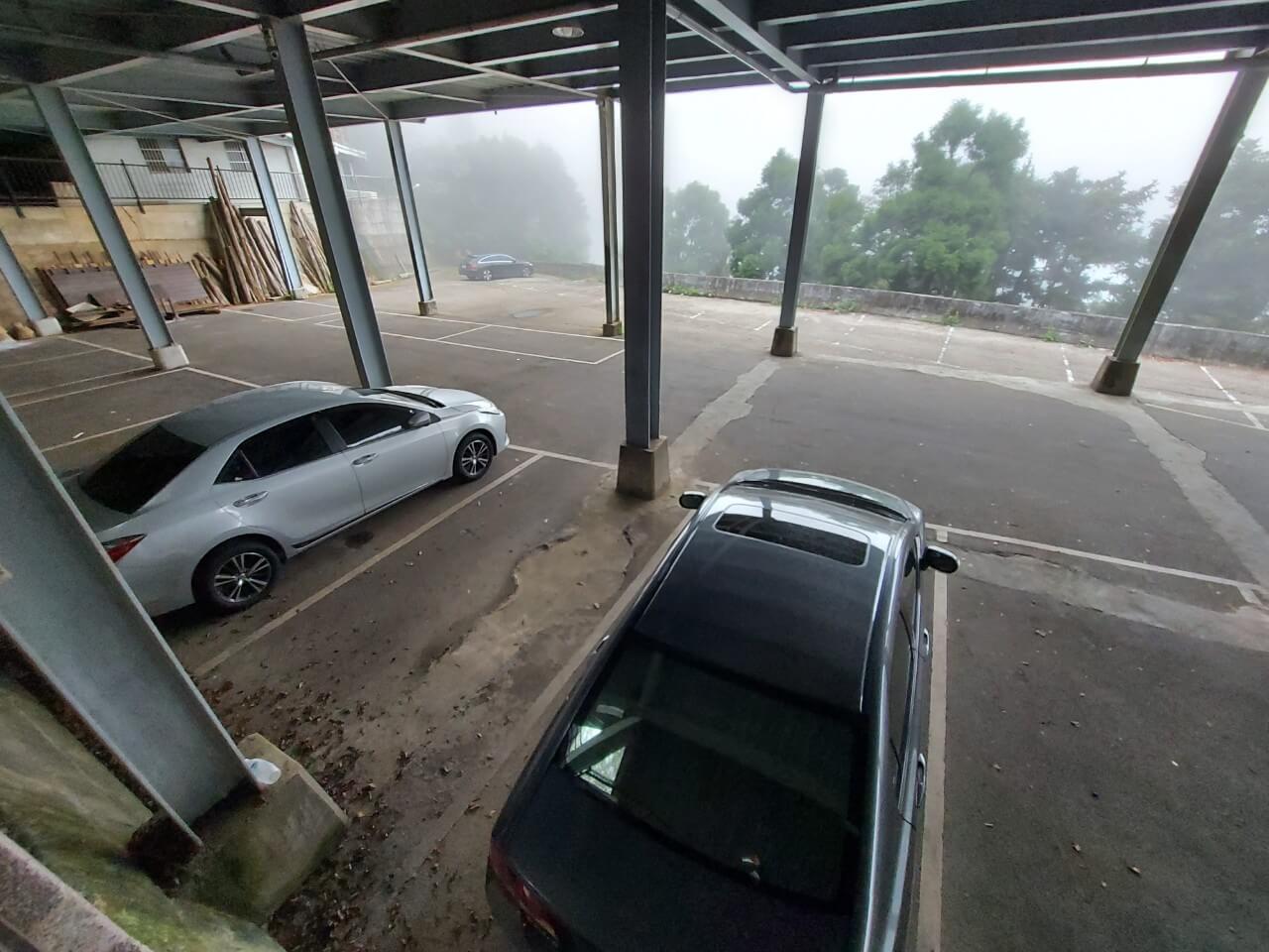 雲洞山莊有一大片的停車場,在停車場停好車以後,從一旁的樓梯上去,就能看到雲洞山莊的橘色建築了