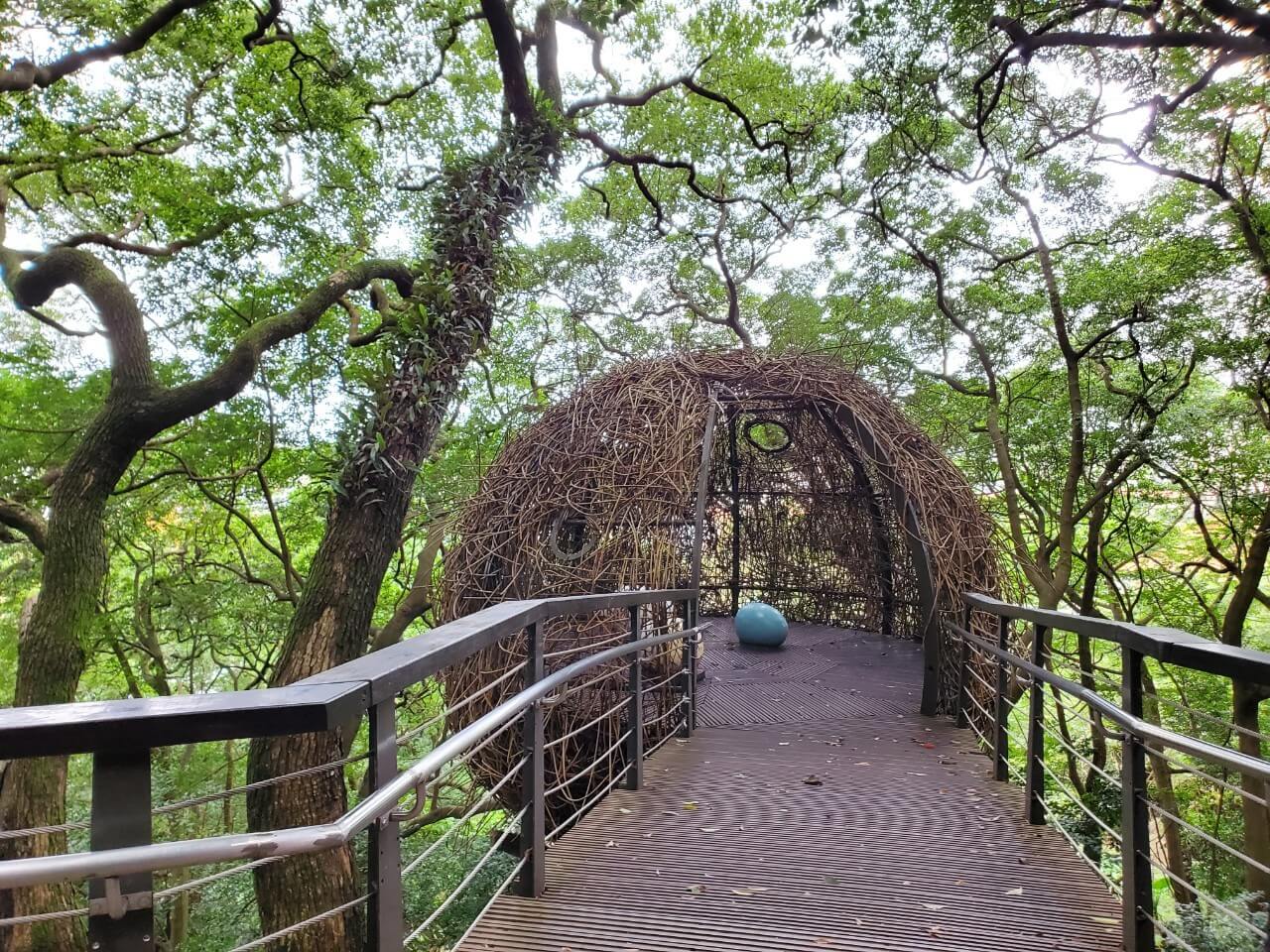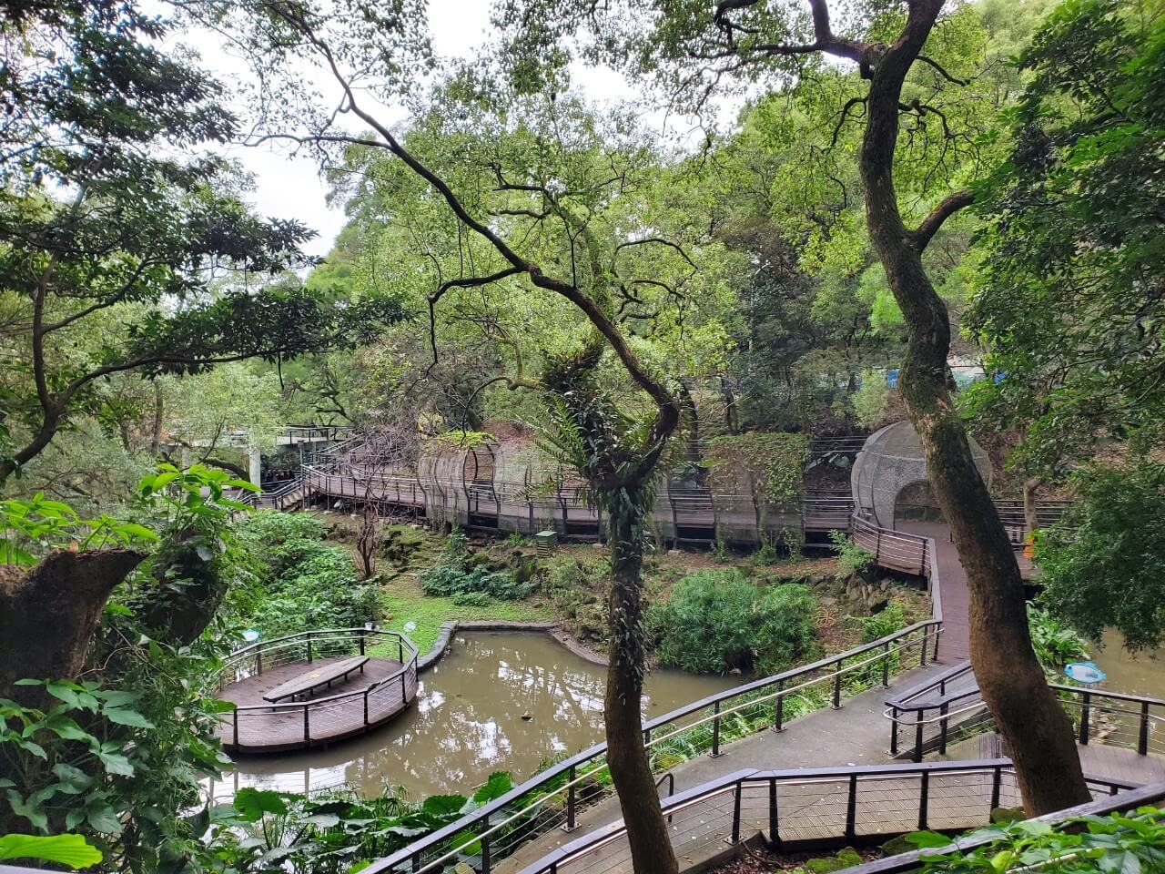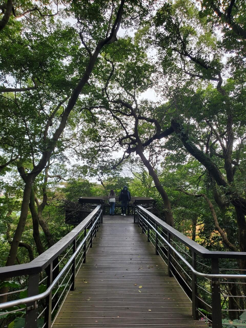 我們沿著木棧道繼續走,沒想到這裡相通的竟然是我們一開始的「桃信亭」,沒想到走了這麼久才繞了一圈啊,我們繼續沿著木棧道走,途中有看到了一個觀景台,不過什麼風景都看不到,我們只能悻悻然的繼續往前走