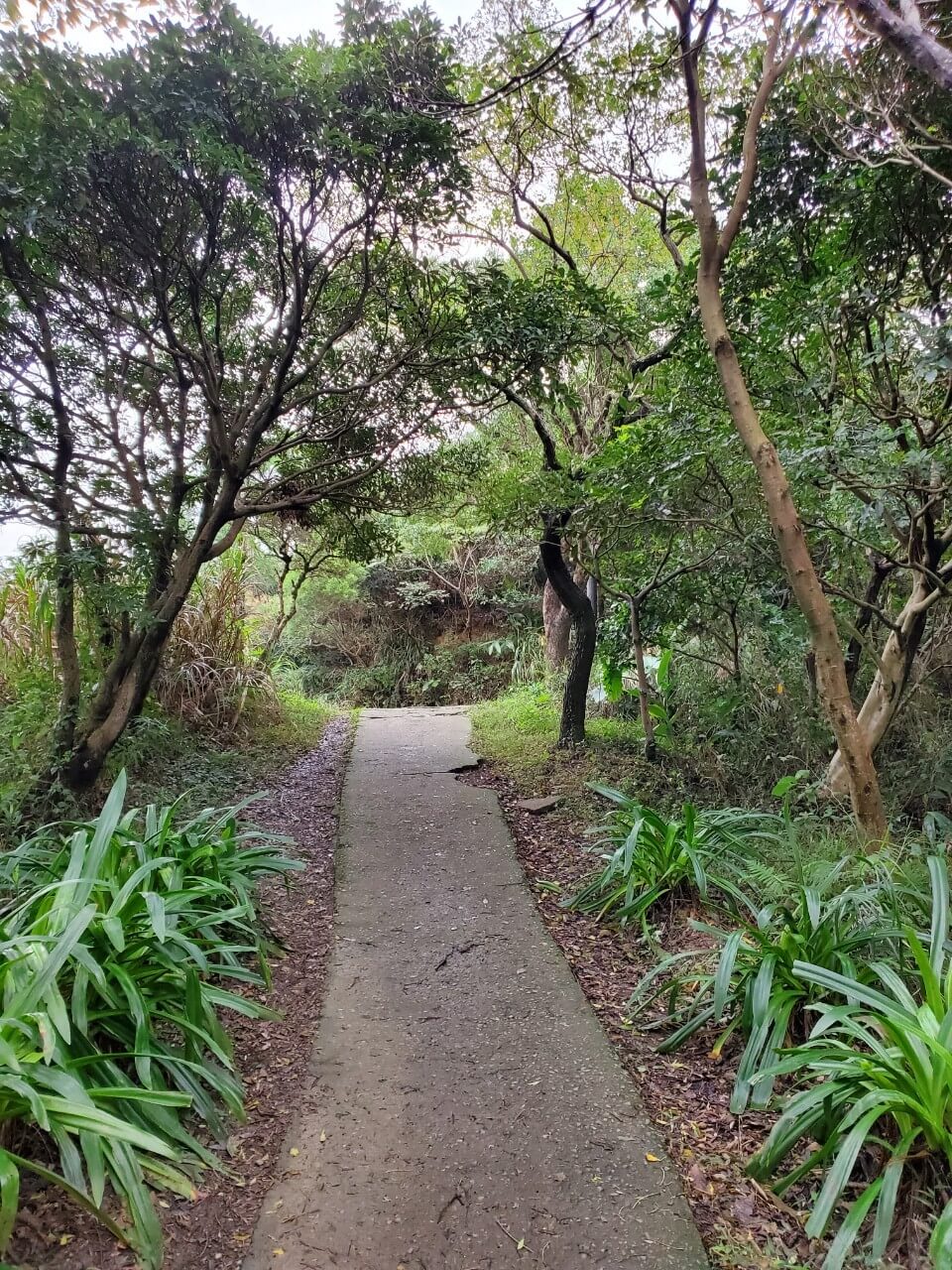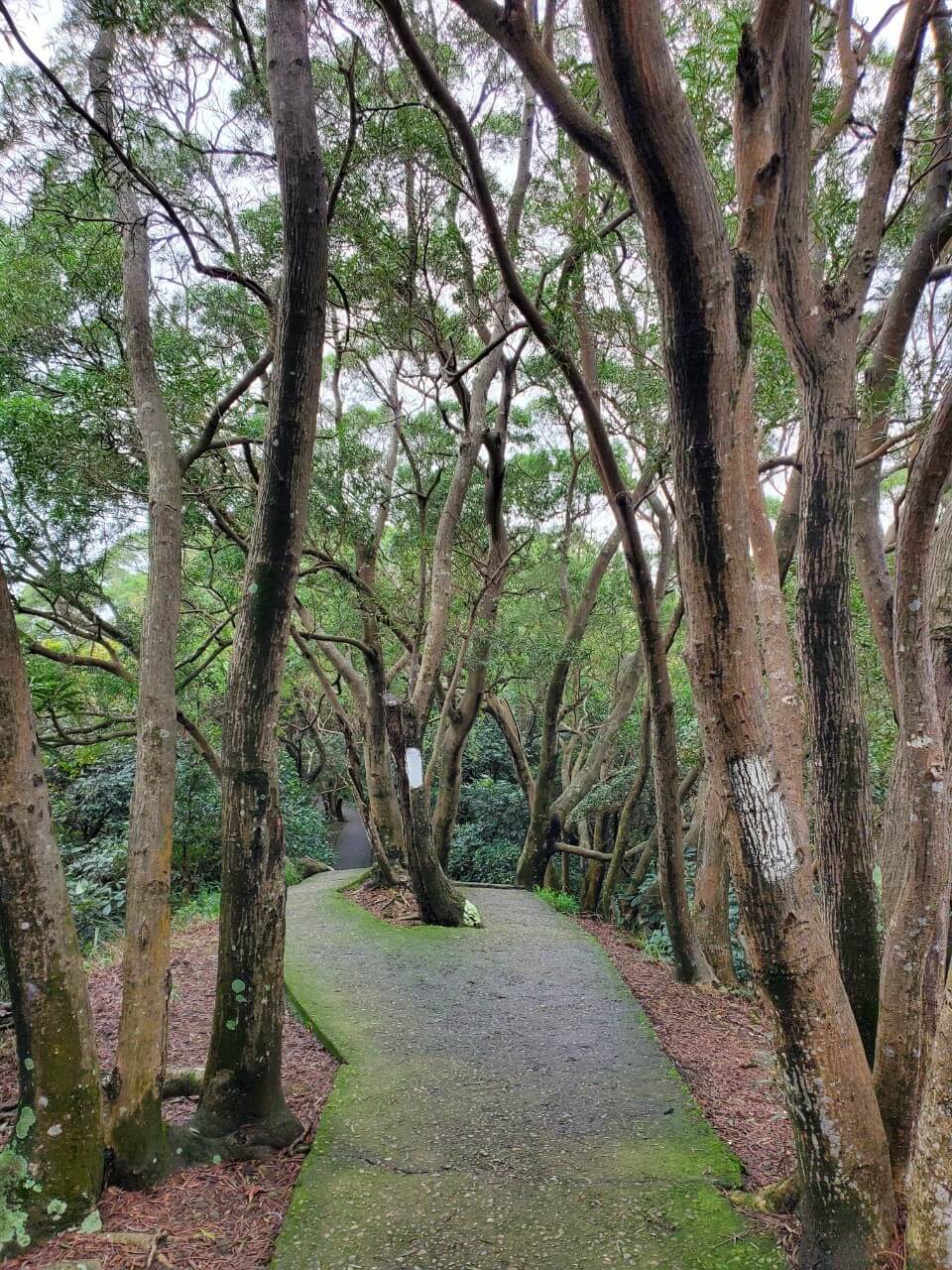 我們繼續往前走,雖然五酒桶山步道是一個平易近人的步道,但是步道總是東裂一塊西裂一塊,步道兩旁也染上了青苔的綠色,在下過雨的午後很容易不小心腳滑