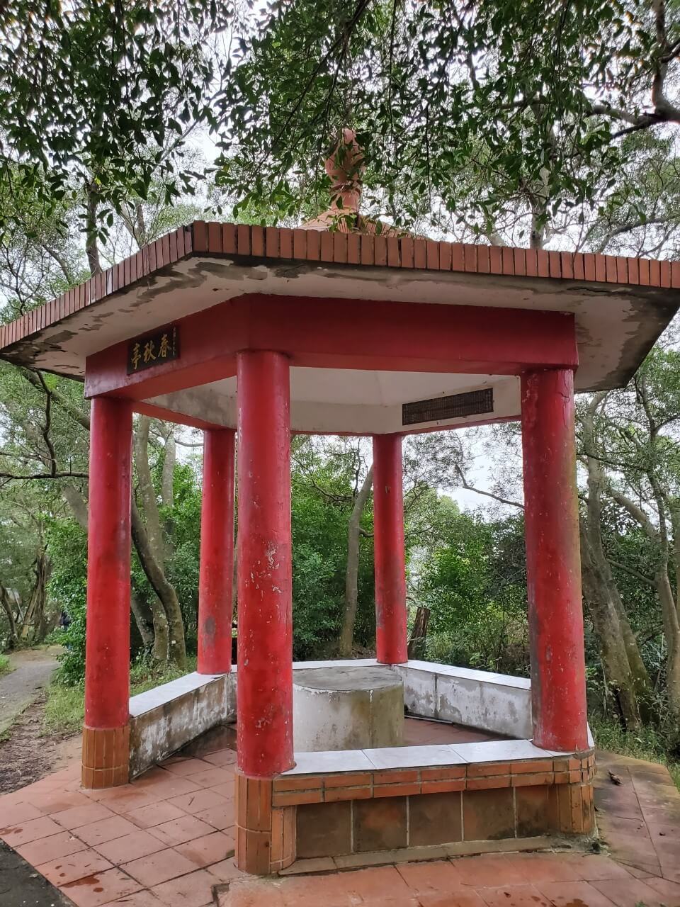 而春秋亭則是讓人覺得很有一種荒廢在這裡的感覺,油漆斑駁看起來好像年久失修的樣子,讓我覺得有點可惜啊