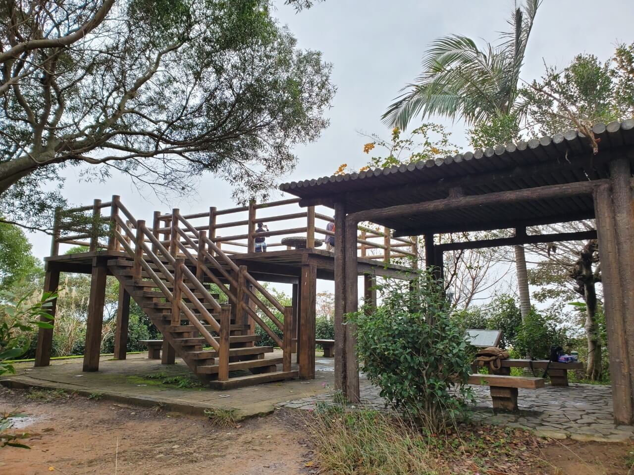 瞭望台上也有設置椅子和桌子,可以坐在這裡稍作休息在繼續前進,除了瞭望台上外,在下方也有幾張椅子,不過我們趕著在太陽下山前爬完,就沒有多加停留