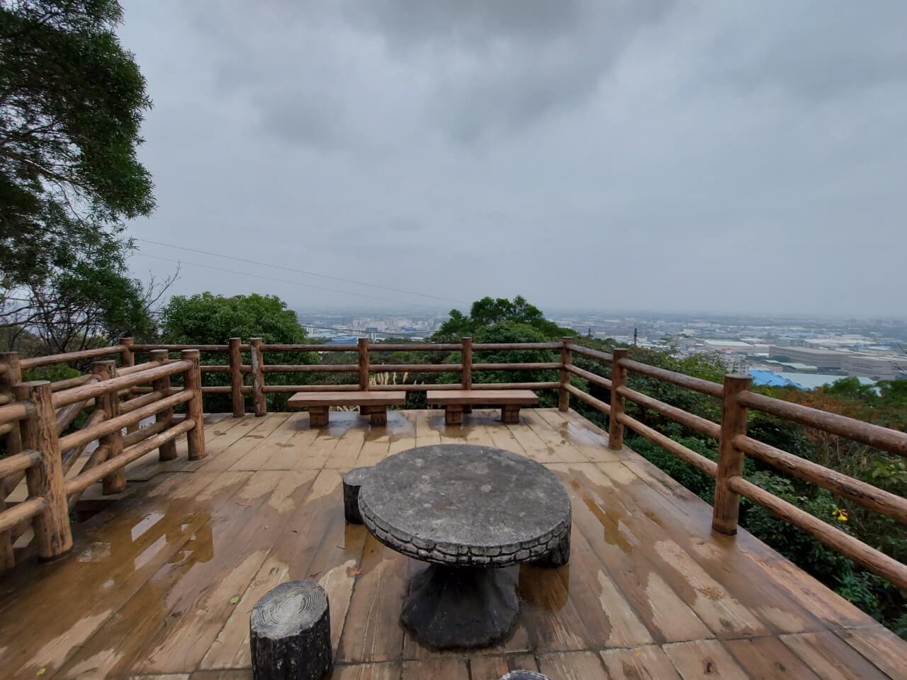 爬上瞭望台這裡看出去的景色比剛剛在春秋亭旁看到的景色更加清楚,這天天氣有點霧看起來濛濛瀧瀧的,不過也可以看到很遠的地方