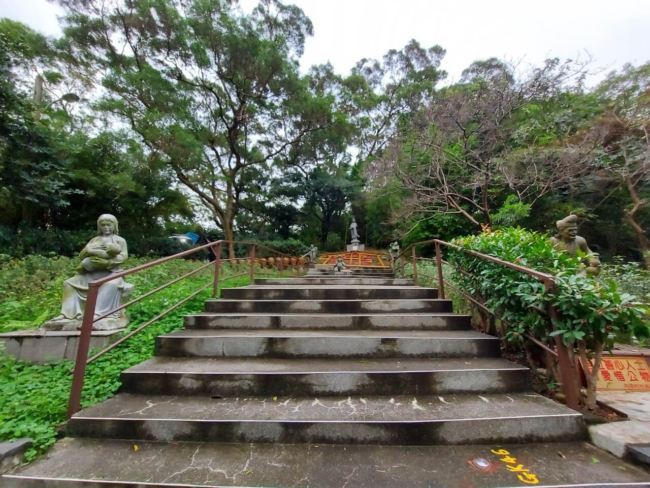 沒想到往前走以後,像是來到了不一樣的地方,有一整片的大草皮還有五個石頭雕像