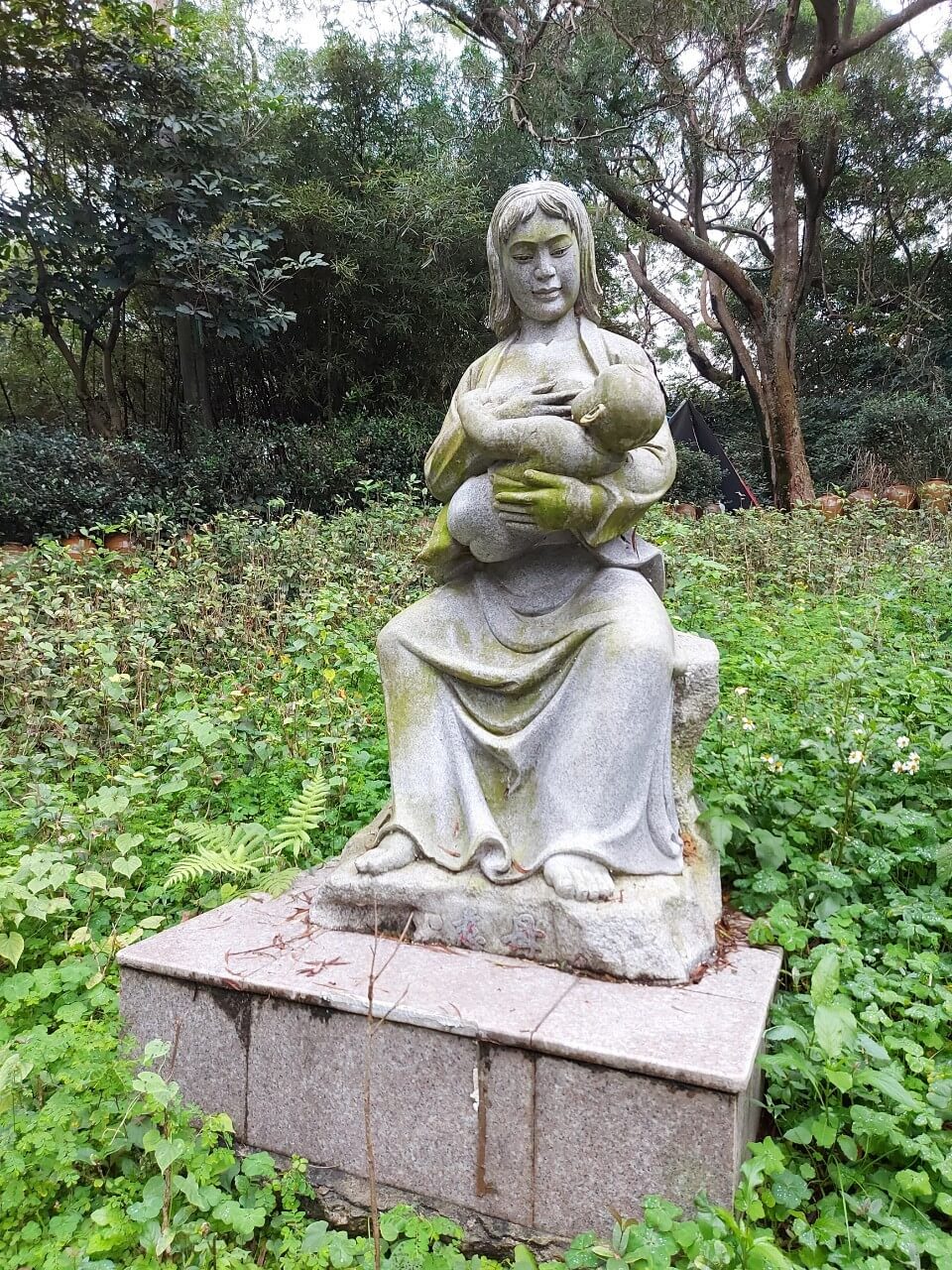 雕像分別是「慈母」、「濟公」、「觀世音菩薩」等,還有一尊很可愛的小石雕,應該是玄武吧