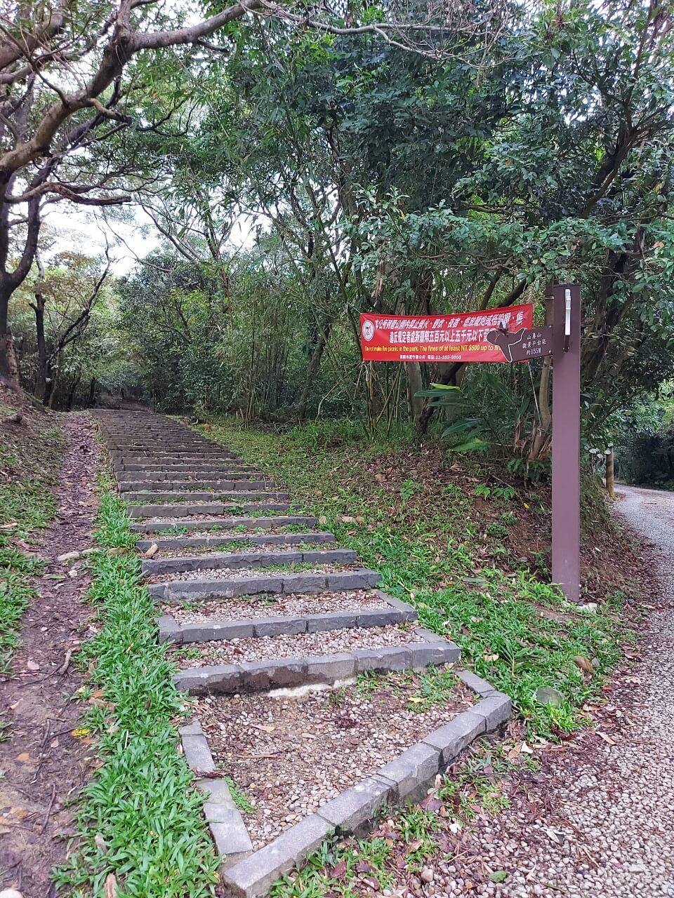 不過樓梯的部分就只有這一段而已,接下來的步道全都是和緩的斜坡,算是一條平易近人的登山步道
