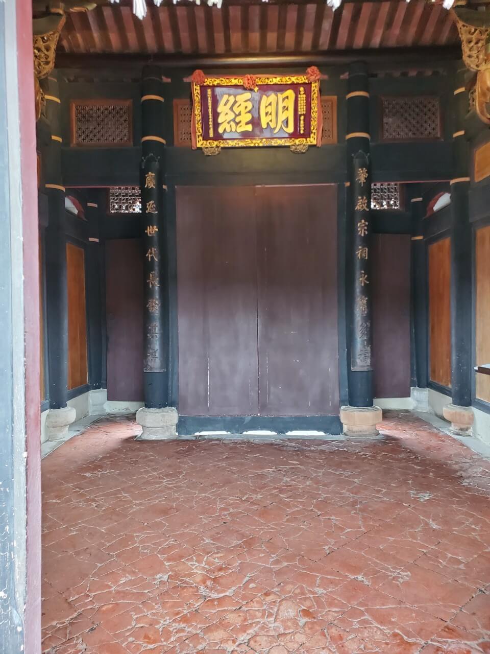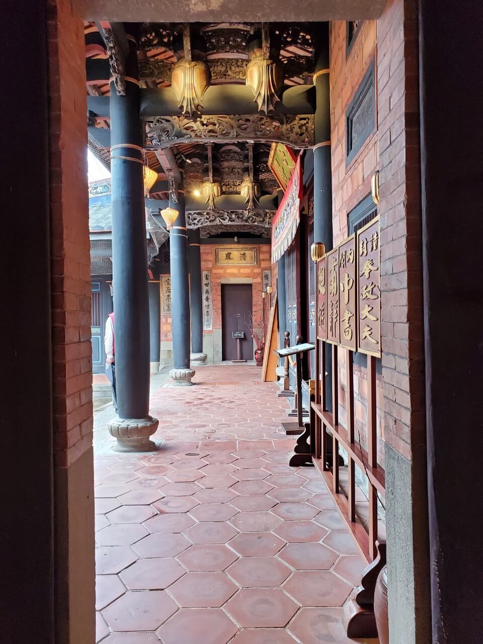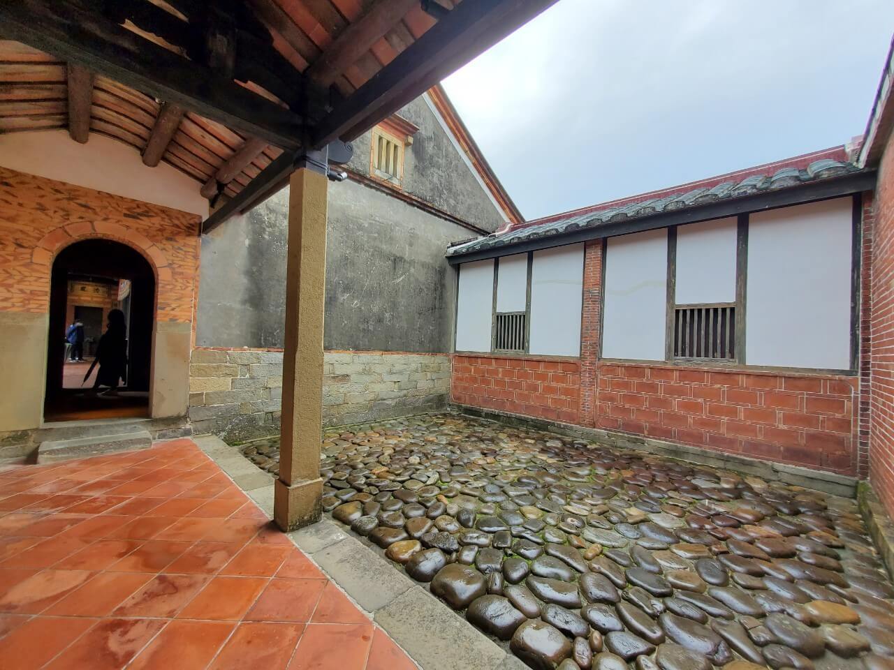 我們從右邊的門開始逛起,李騰芳古宅是很標準的三合院加上四合院,所以格局上看起來非常方正,站在門口走道的景象一覽無遺