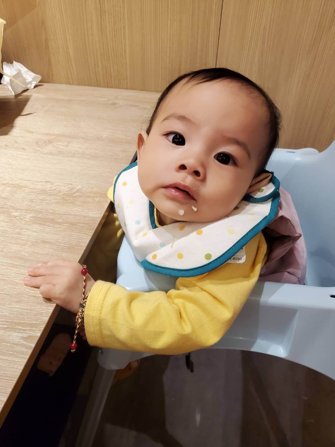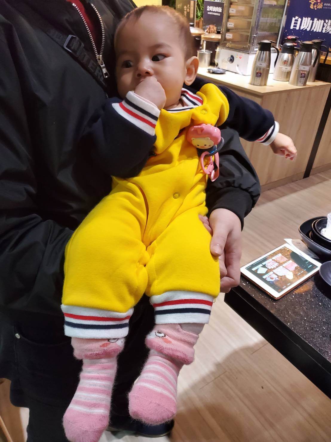 剛好感冒這幾天,家裡有一起出去吃飯,沒想到平常可以乖乖坐著吃飯的媛媛,坐下來沒多久就討著要抱,是一頓很辛苦的飯啊