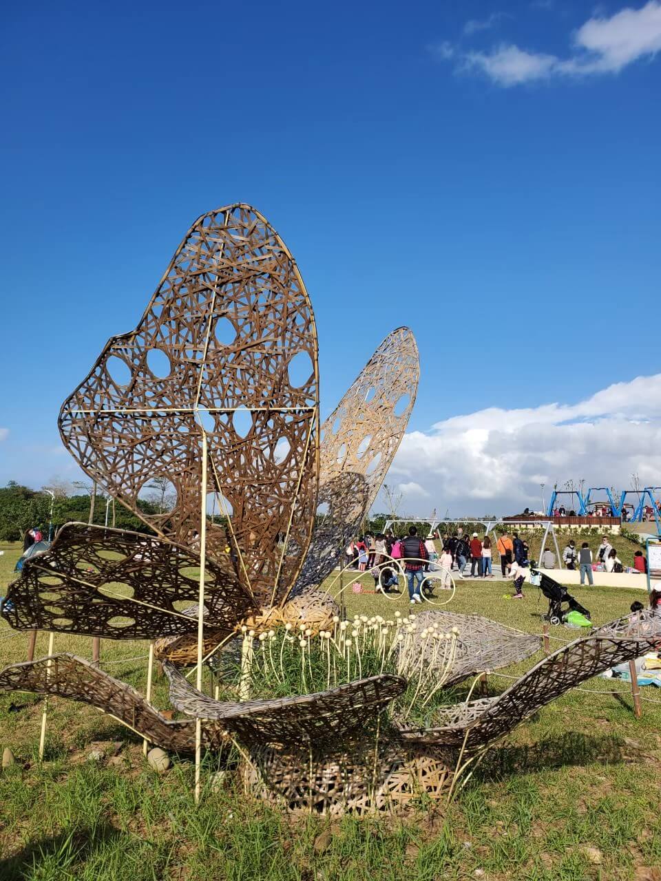 草地上還有一些藝術裝置,沒看錯的話應該都是用竹子編織而成的,超大蝴蝶和螞蟻,看起來非常厲害、精緻呢