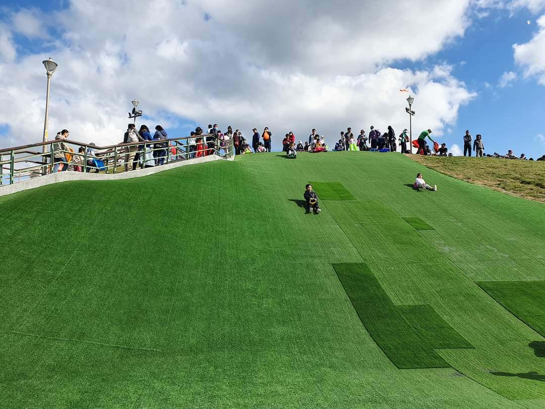 除了草地可以讓小朋友放電以外,這裡還有溜滑梯和滑草坡,當天看到的小朋友都非常有秩序的排隊,一個一個來