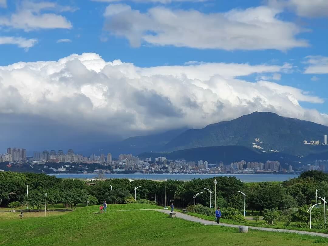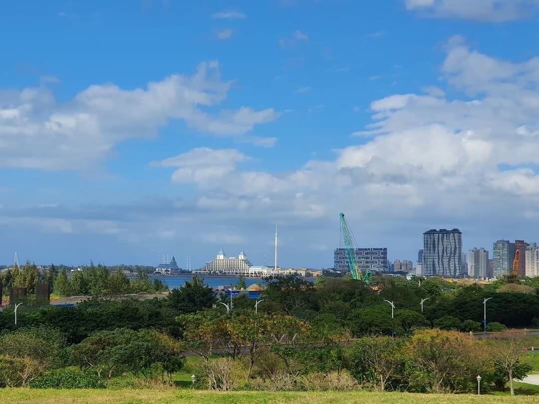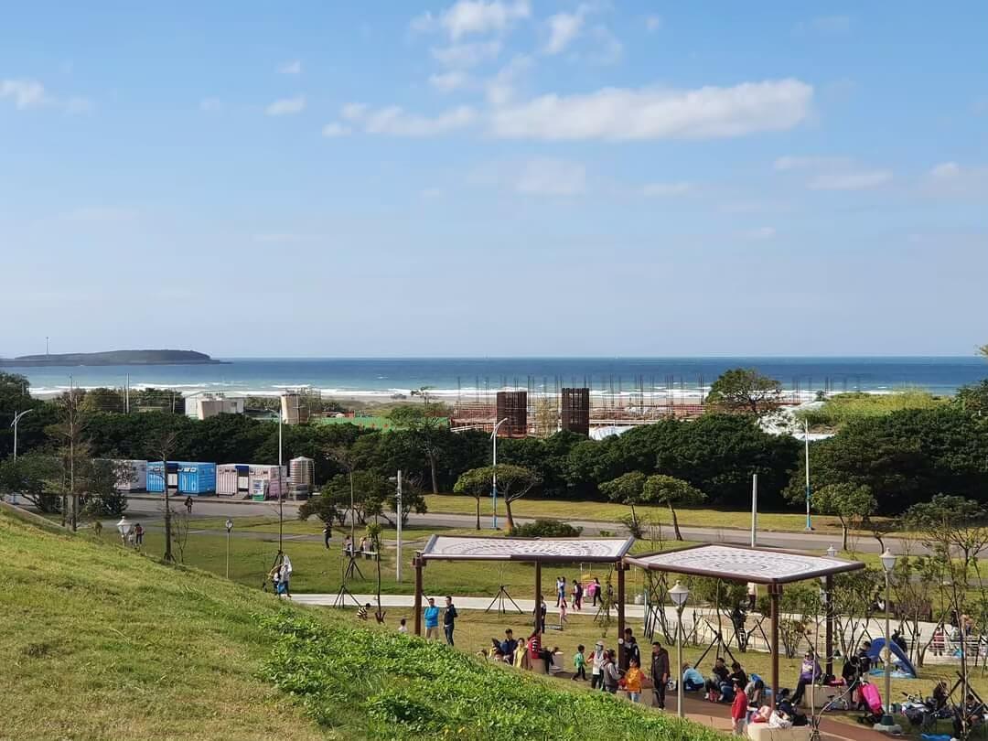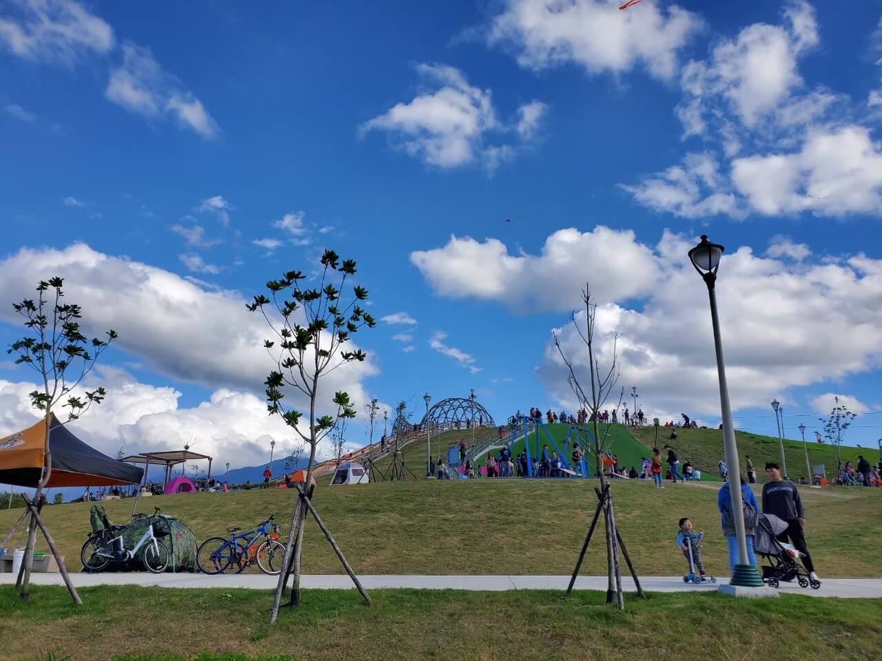 如果有體力的話,可以爬到文化公園的最頂端,從這裡看出去的風景很漂亮,一望無際,藍天白雲配上青綠色的草地,轉個方向還能看到遠方的福容大飯店