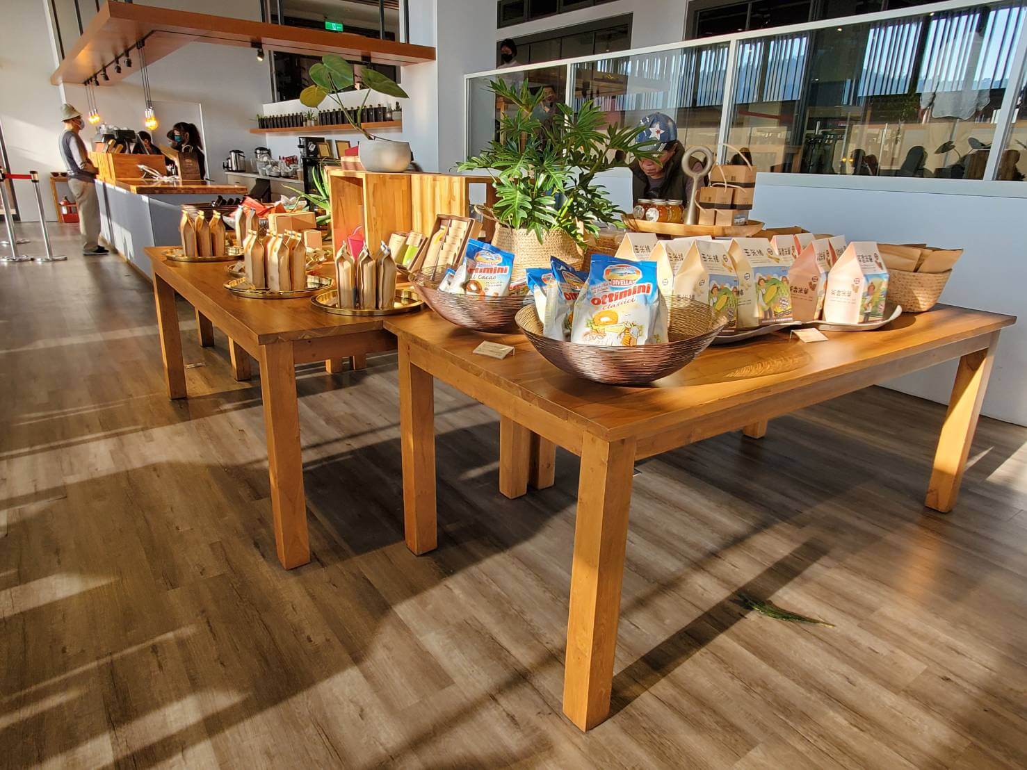 在高腳椅座位區旁邊有幾張桌子,上面放了一些有關於「茶」的伴手禮,從餅乾到茶包甚至還有果醬等等,種類蠻多的