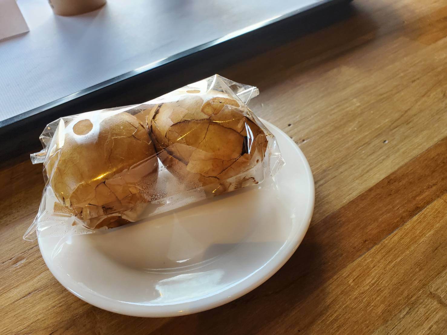 我們點了茶葉蛋、義大利經典餅乾、美式咖啡和巧克力牛奶,鹿篙咖啡莊園的茶葉蛋是冰冰涼涼的,不過我和小伙伴一致認為 喝喝茶的茶葉蛋比較好吃