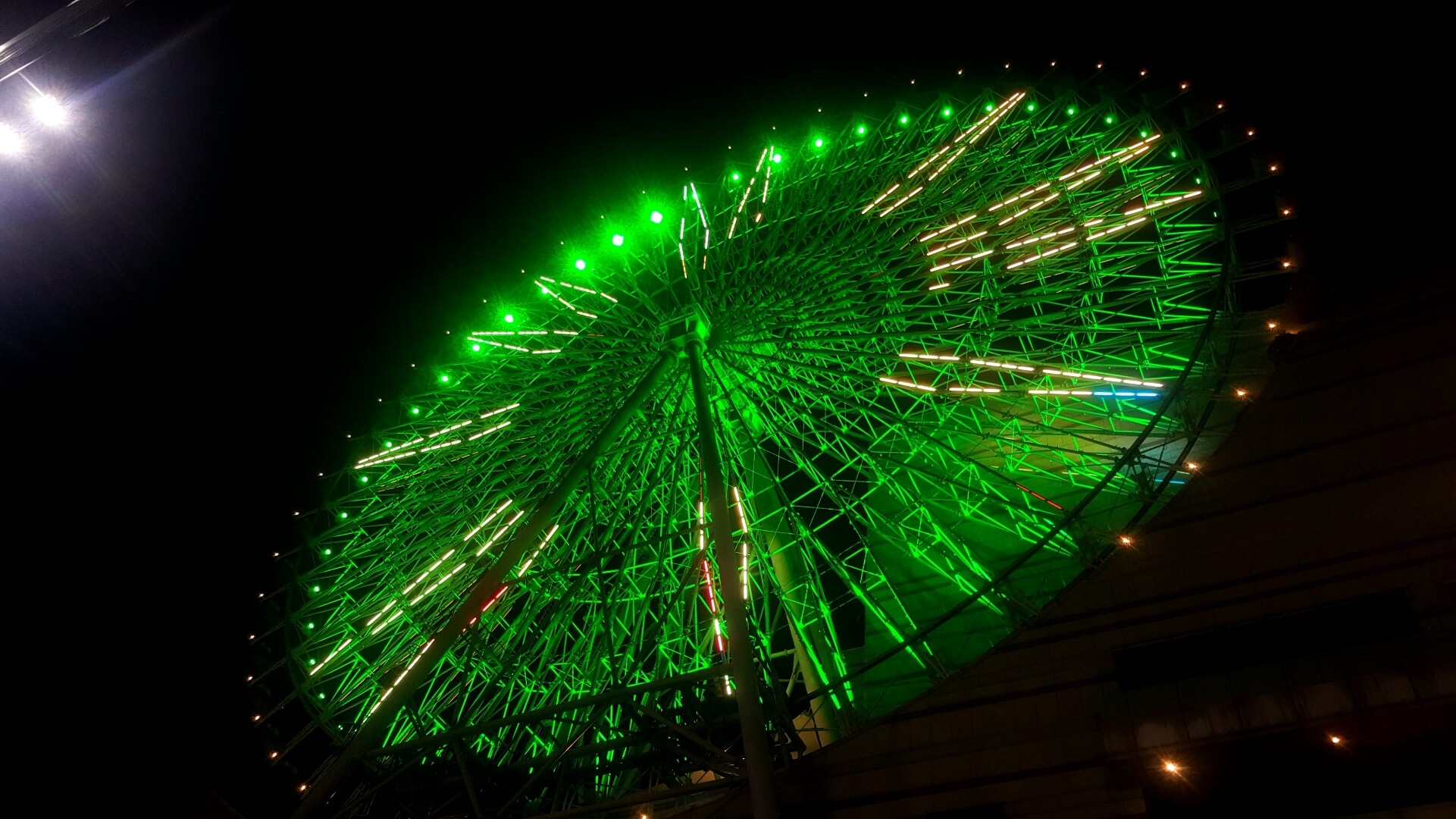 美麗華摩天輪到了晚上會披上閃亮的霓虹燈,不少人從捷運站一出來就拿起手機,想將摩天輪美麗的身影保留在自己的手機裡