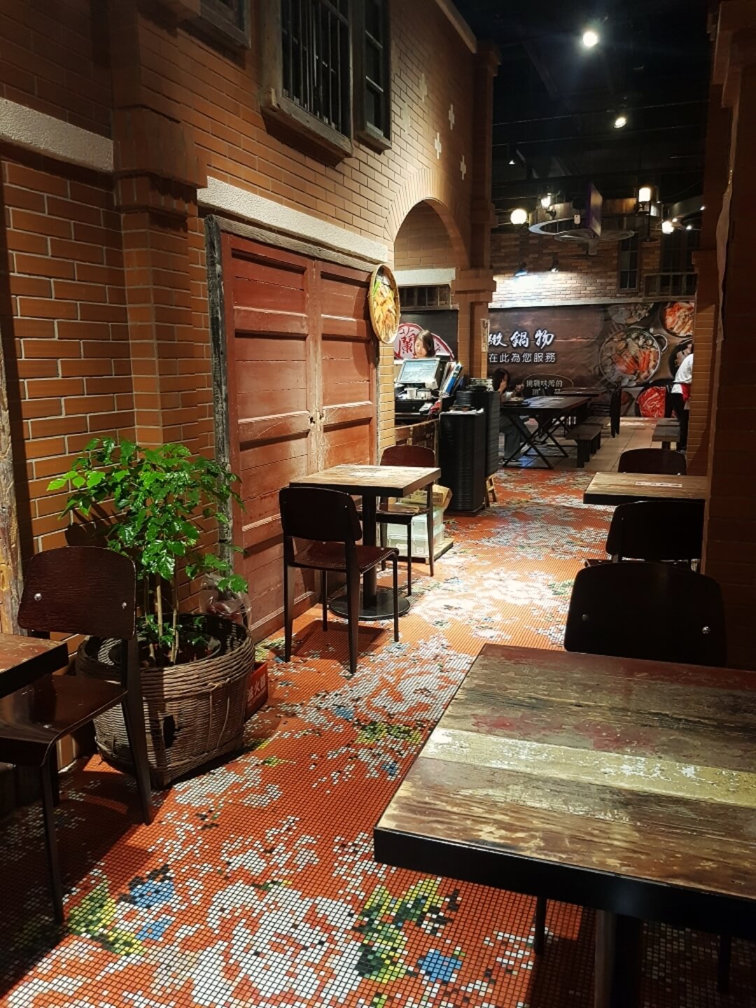 這裡的裝潢風格非常非常的特別,是採用紅磚及木頭打造的復古風情,而地上設計也不馬虎,是採用馬賽克地磚拼湊成一朵朵花兒的圖樣,還有不少好幾十年前會出現的小東西