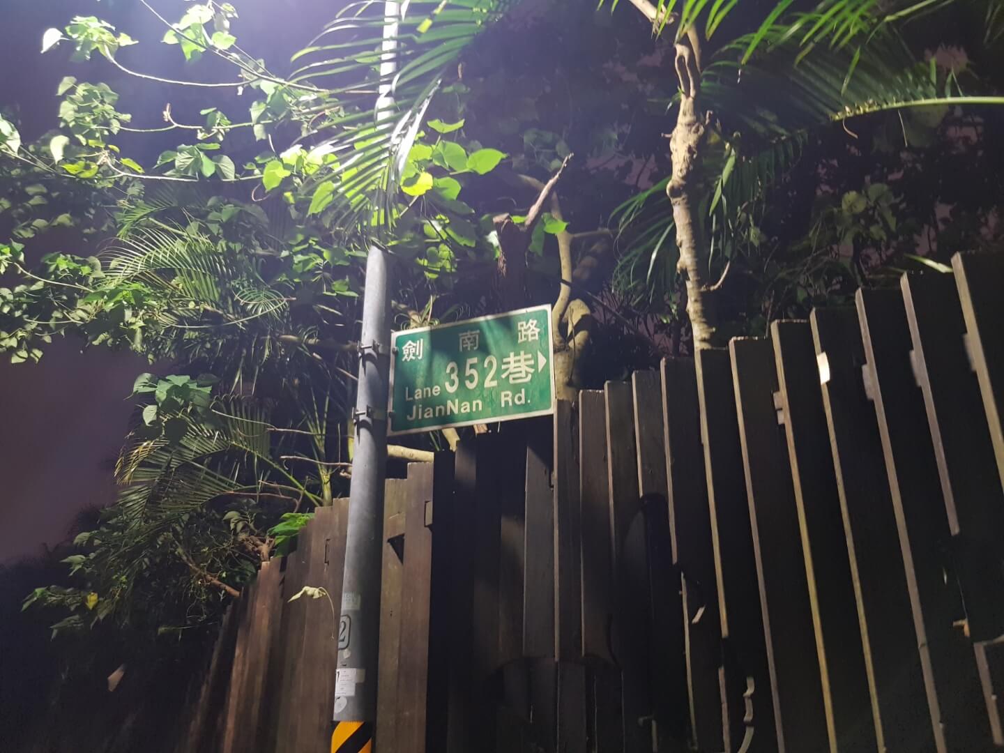 從劍南路上去會看到兩條岔路,右邊那條就是劍南蝶園,巷口一塊不太明顯的告示牌