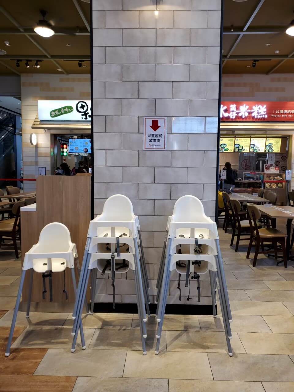 如果有帶孩子出門的話,建議可以選擇一樓美食街,因為這裡除了有兒童椅以外,還有一區可以停放嬰兒車跟小孩遊戲區,是很不錯的設計呢