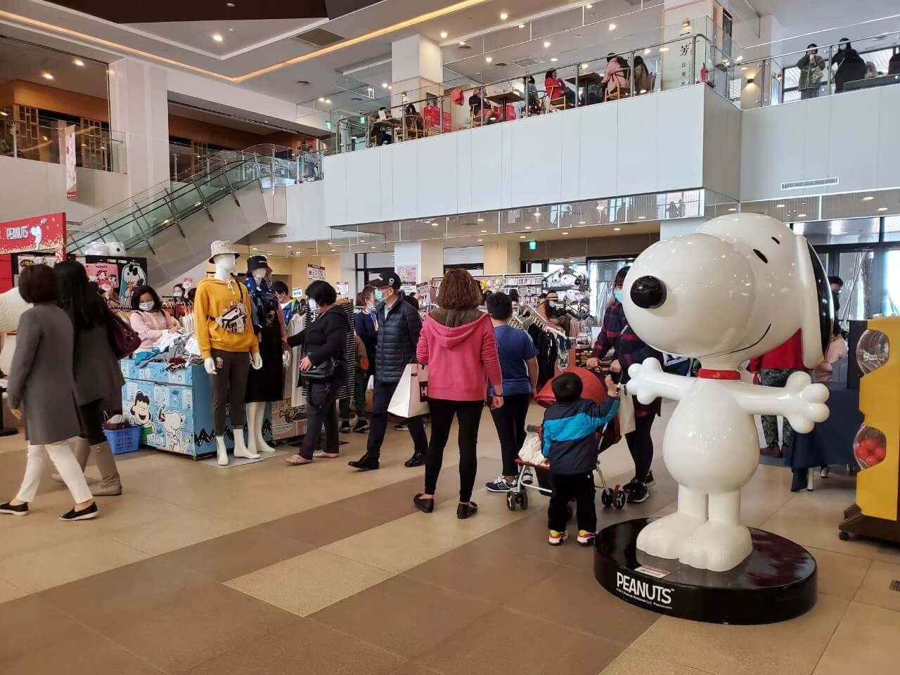 用完餐後,回到一樓繼續逛,這裡有玩具店、服飾店、婦嬰店和家具店等等,可以慢慢逛很久,特別的是 在中間的廣場好像時不時會有快閃活動,我們當天去的時候,遇到的是史努比,還有巨大扭蛋呢