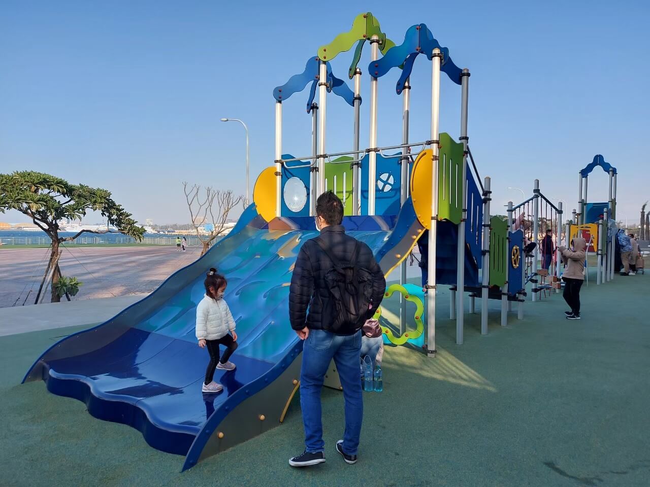 除了室內兒童遊樂區外,戶外也有旋轉木馬、遙控車等等的遊戲可以玩,還有最吸引大家目光的摩天輪,如果是想要溜滑梯的話,在靠海那面有設計一區室外兒童遊樂區,不過冬天來到這裡真的需要多穿一點,不然風會大到皮皮挫