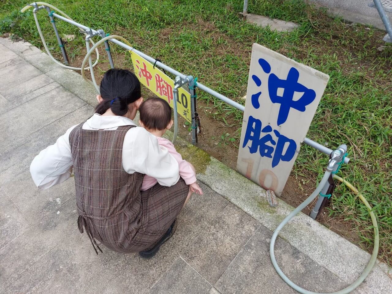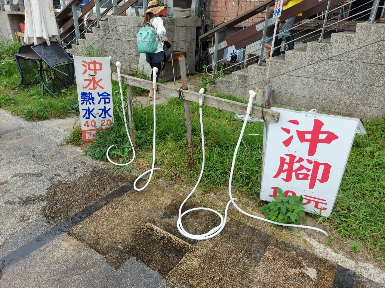 之前在入口旁有比較近的沖水區,但是在整修沒有開放,所以這一次我們沿著右邊的木棧道走,來到白沙灣最右邊,有幾家店家有提供沖水服務,熱水也有,要詢問店家一下