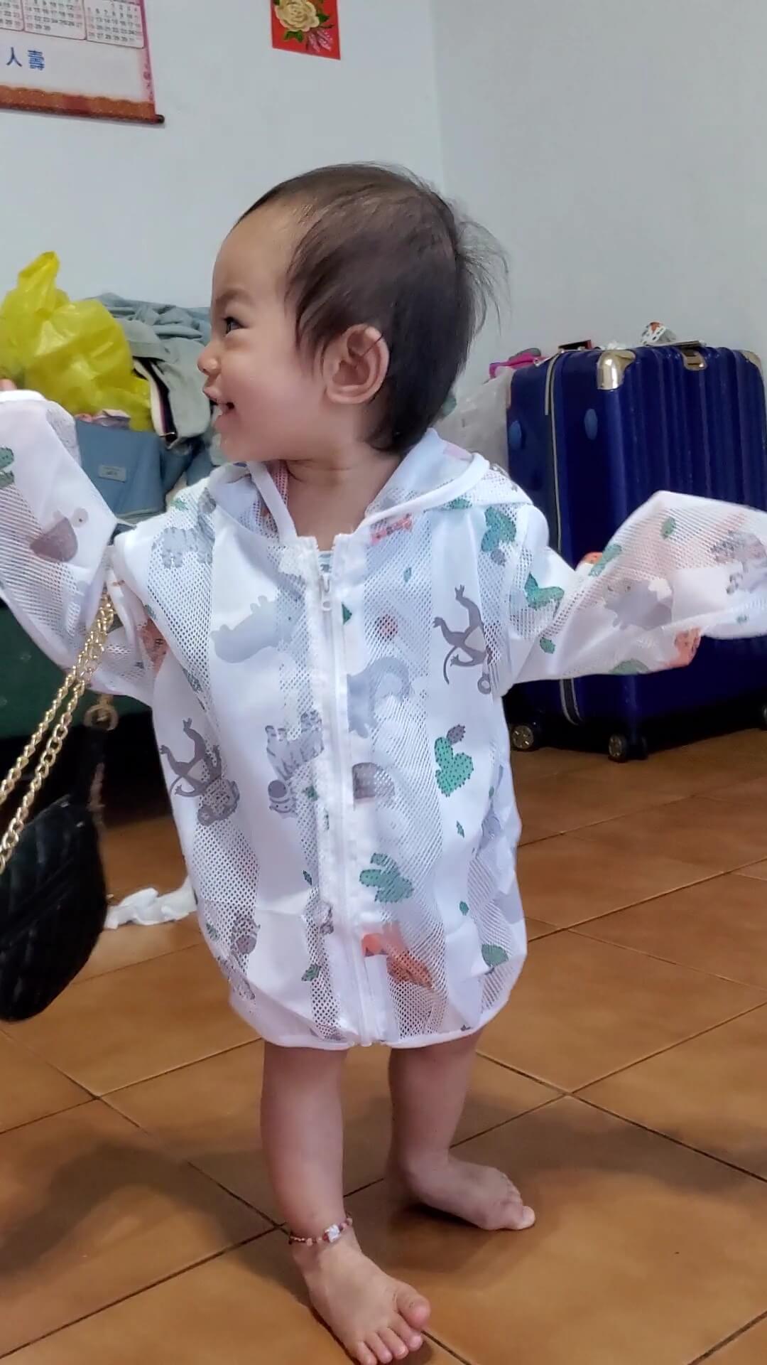 有一天下午,姐姐他們出去買東西,回來了的時候竟然還帶了禮物給媛媛,是一件防曬外套跟一個小包包,媛媛看見防曬外套沒有什麼特別的反應,倒是看到包包眼睛都亮了起來