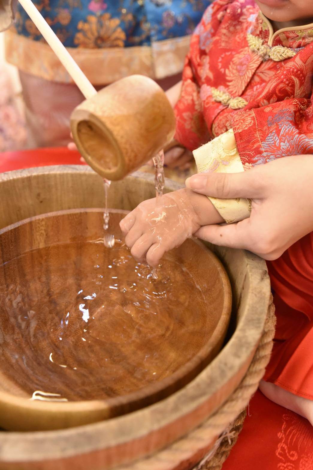 一開始就是按照流程來,淨手、摸蔥門、踩大餅,最後才是重頭戲「抓周」,不得不說當天媛媛的配合度意外的高,隨隨便便就被逗笑,也很穩定,超級值得誇獎